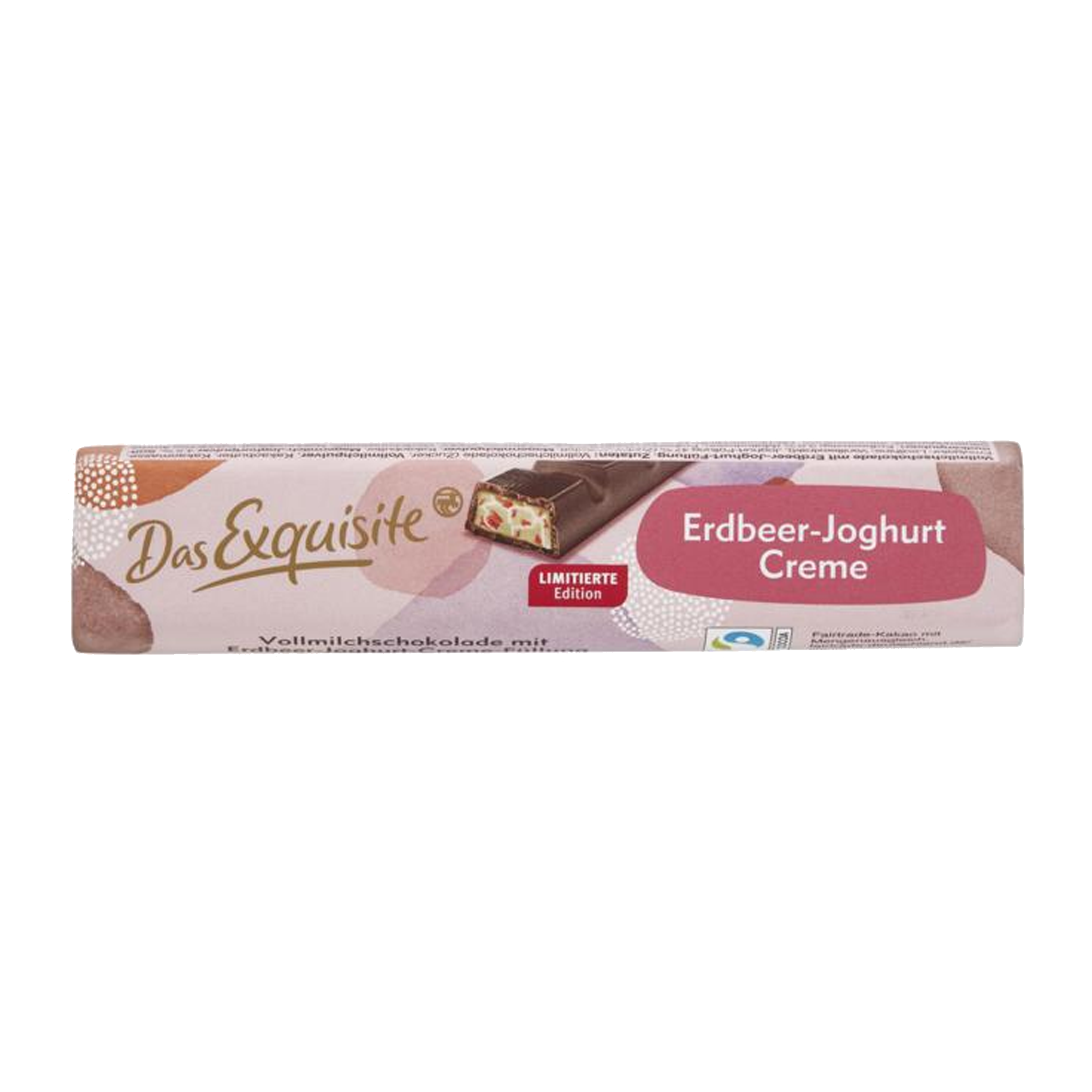 Čokoládová tyčinka s jahodovo-jogurtovou krémovou náplní.