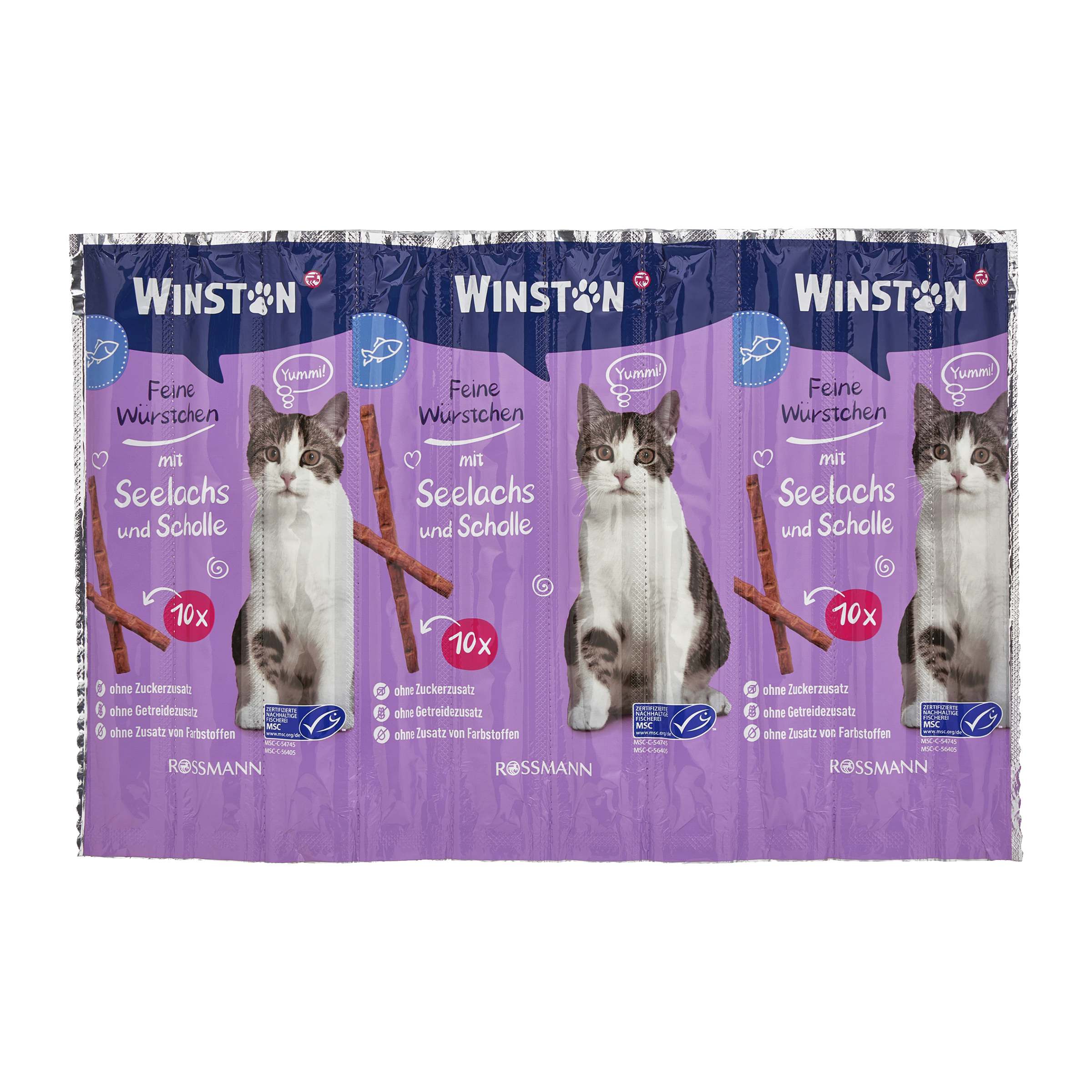 Jemné párečky s treskou a platýzem - doplňkové krmivo pro dospělé kočky.