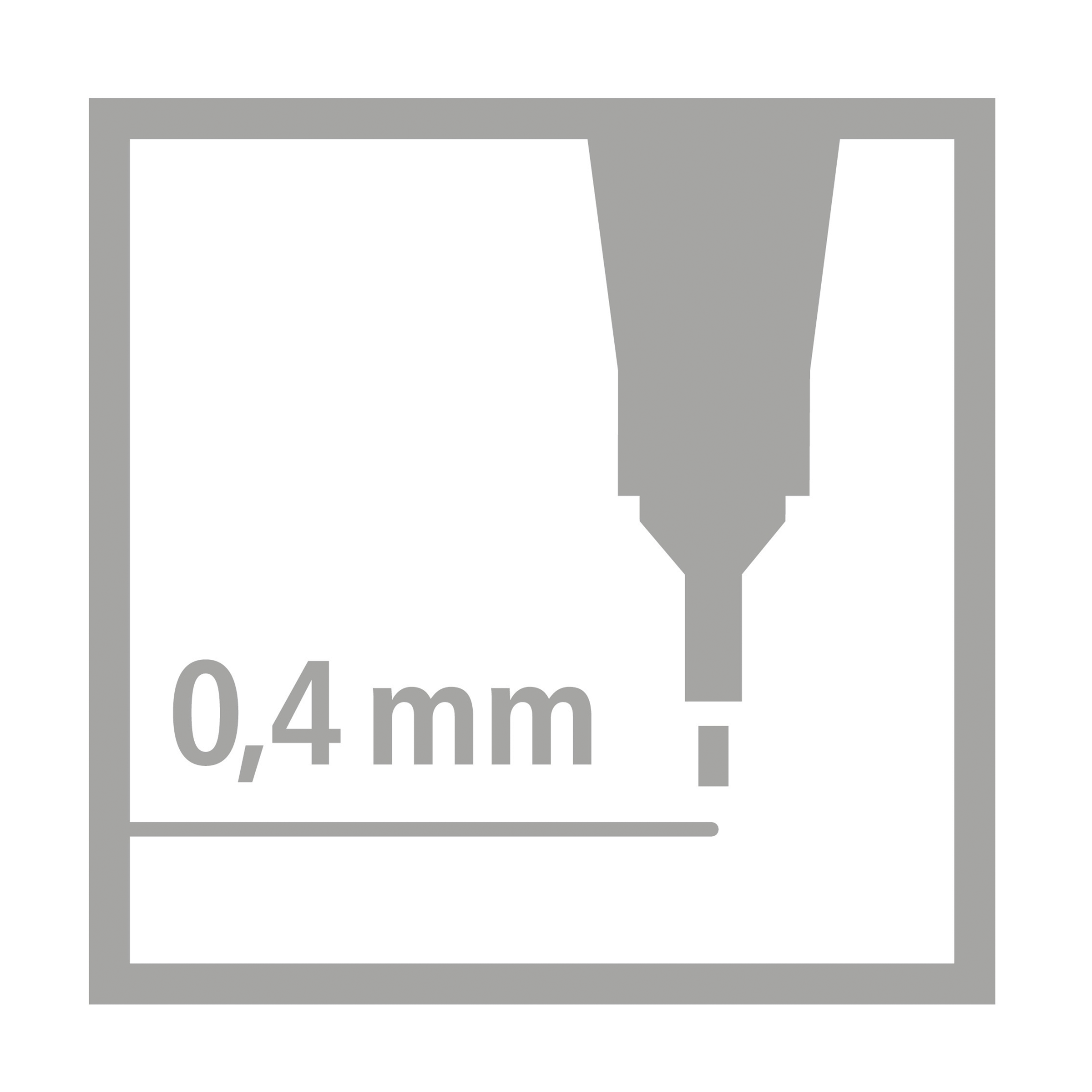 Jemná linka a nezaměnitelný tvar a barva těla STABILO point 88 jsou známkou preciznosti a široké škály barev. Ne nadarmo je na trhu v Evropě STABILO point 88 číslem jedna. Jeho hrot zasazený do kovového pouzdra byl nesčetněkrát zdrojem skvělých nápadů a důmyslných myšlenek; ať už v práci, ve škole, v každodenním životě nebo ve chvílích kreativity - STABILO point 88 je vaším dokonalým společníkem. Šířka stopy 0,4 mm poskytuje kontrolu a přesnost. Při kreslení můžete vytvořit ty nejjemnější detaily, a při psaní můžete psát opravdu malá písmenka. Je také perfektní pro práci s pravítkem, šablonami a pro rýsování. Ideální pro přesnou práci, barevné strukturování textu a psaní poznámek. Zkrátka všestranný pro každou situaci.