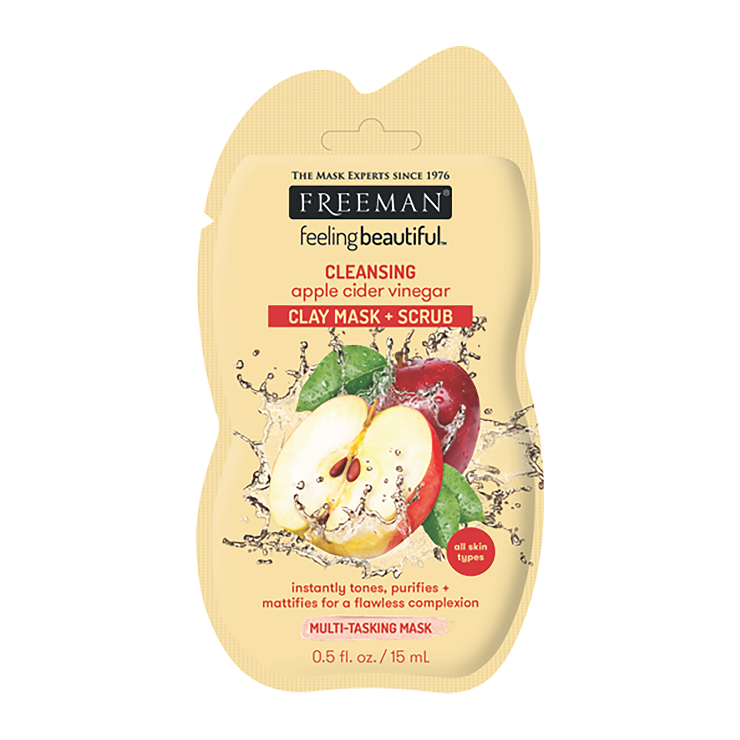 Tato čistící multifunkční maska 4v1 pohlcuje mastnotu lépe než kdykoli předtím. Funguje jako maska, peeling, čistič & toner pro zářivou pleť. Může se používat jako pleťová maska nebo jako denní čistič pleti pro zářivou pokožku. Jablečný ocet – pleť čistí, tonizuje a zanechává pleť rozjasněnou Bentonite & Kaolin - absorbuje do hloubky mastnotu a pleť čistí Peeling – naturální pemza- odstraní odumřelé kožní buňky