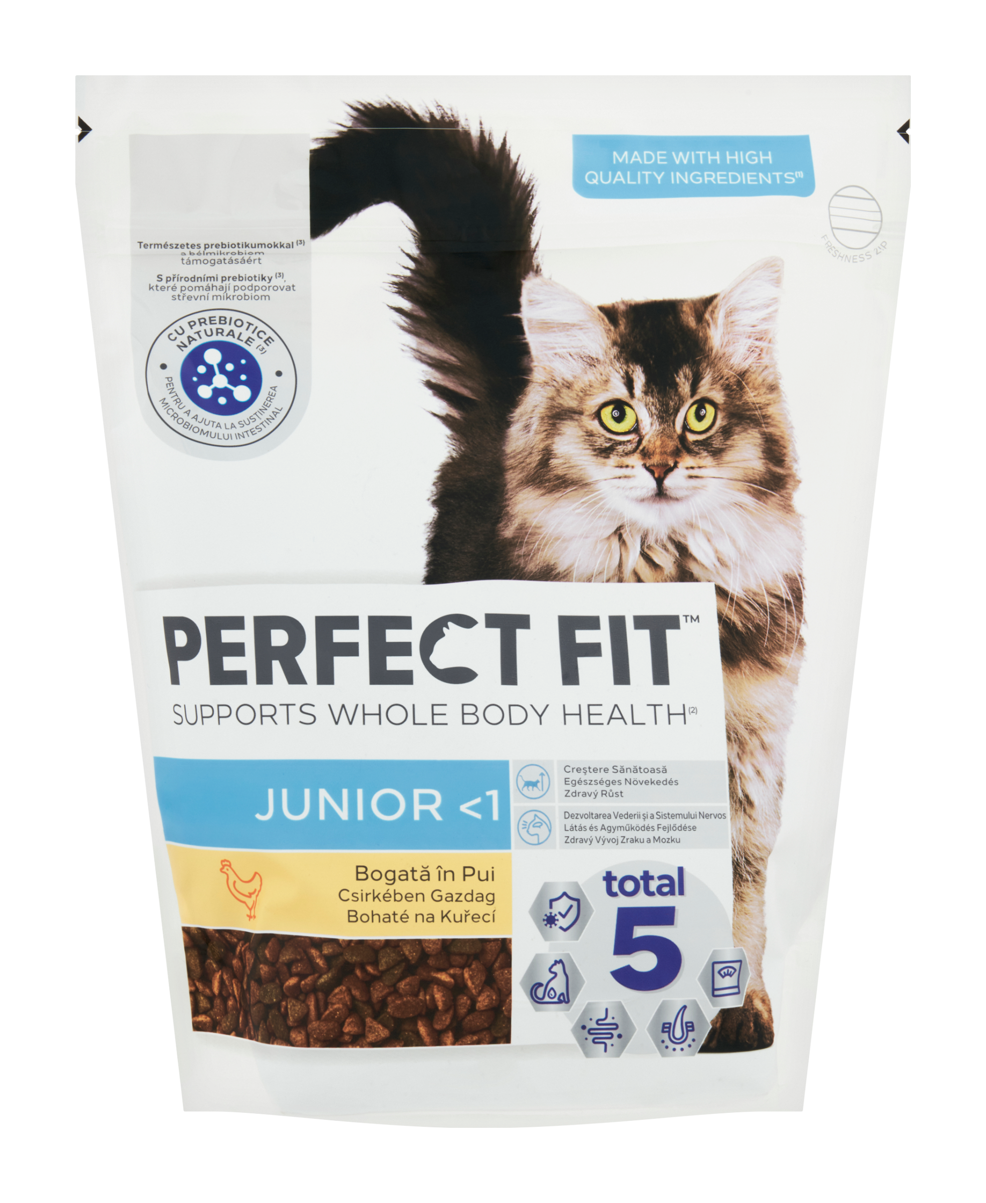 Každá lahodná receptura Perfect Fit™ obsahuje unikátní složení, které podporuje zdraví celého těla vaší kočky a přináší další zdravotní přínosy, speciálně navržené s ohledem na její věk nebo životní styl. ⁽¹⁾ Vyrobeno z vysoce kvalitních ingrediencí. ⁽²⁾ Podporuje zdraví celého těla. S přírodními prebiotiky ⁽³⁾, které pomáhají podporovat střevní mikrobiom. ⁽³⁾ Používáme kvasnice jako přírodní zdroj prebiotik. Zdravý růst Bohaté na vysoce kvalitní bílkoviny, které přispívají ke zdravému růstu vašeho kotěte. Zdravý vývoj zraku a mozku Díky DHA obsažené, která je obsažena také v mateřském mléce, podporuje vývoj zraku a mozku. Pro zdravý vývoj kostí Vyvážený obsah vápníku a fosforu pro zdravé a silné kosti. Silná přirozená obranyschopnost Doplněno o taurin, vitamín E a vitamin C, o nichž je známo, že pomáhají podporovat přirozenou obranyschopnost. Zdravý močový trakt Obsahuje vyváženou kombinaci minerálů, které podporují zdravý dolní močový trakt. Zdravé trávení Vytvořeno s vysoce kvalitními bílkovinami a kvasnicemi, přírodním zdrojem prebiotik, na podporu zdravého trávení. Optimální hmotnost a fyzická kondice S přizpůsobeným množstvím bílkovin a energetické hladiny, které pomáhají podporovat udržení optimální hmotnosti a fyzické kondice. Zdravá kůže a srst Obsahuje zinek, který pomáhá podporovat zdravou kůži a srst.