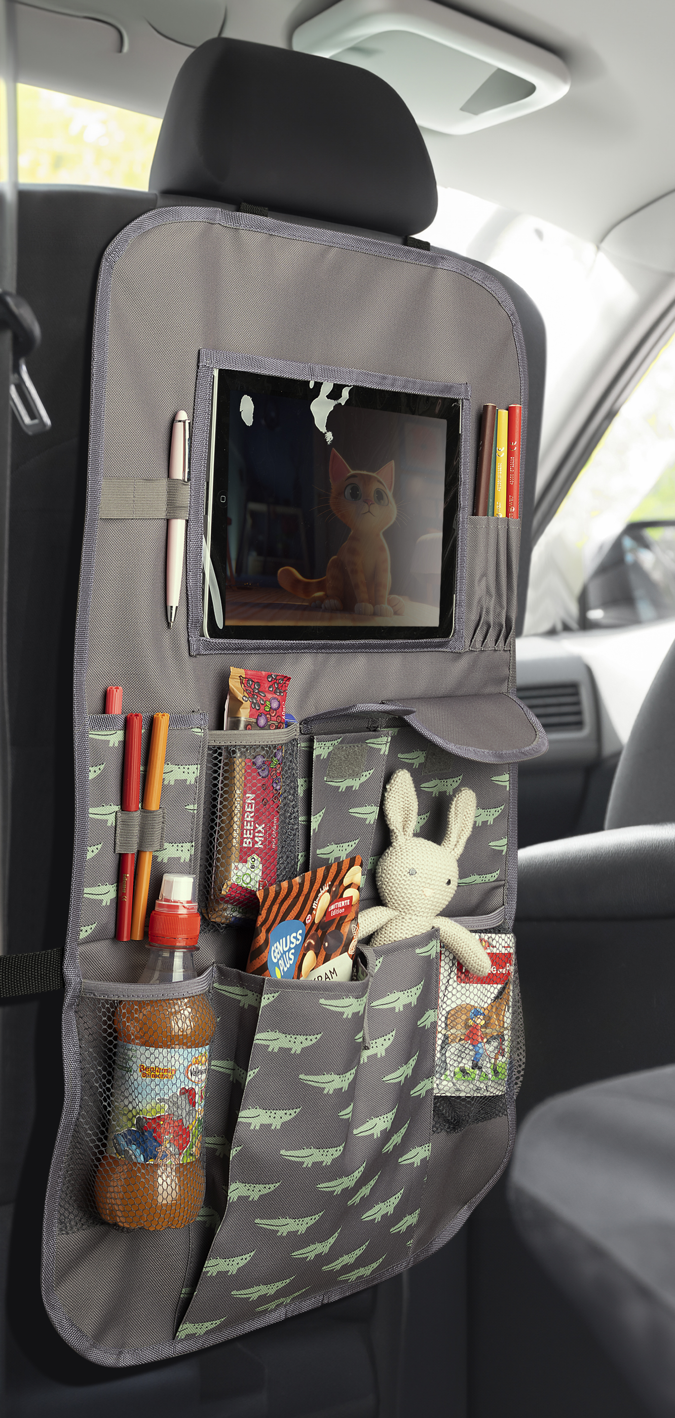 - Udržuje pořádek během cest a chrání zadní část sedadla