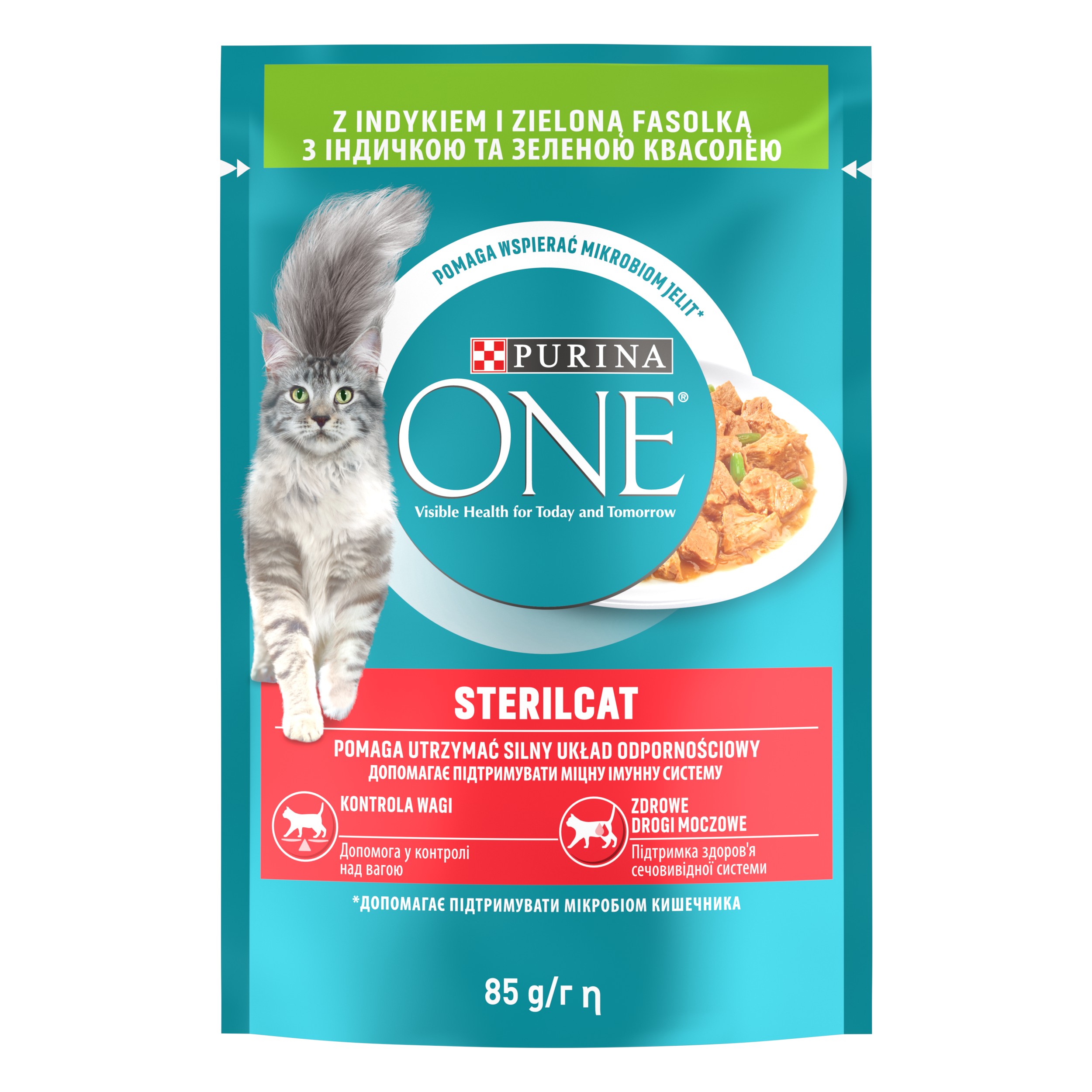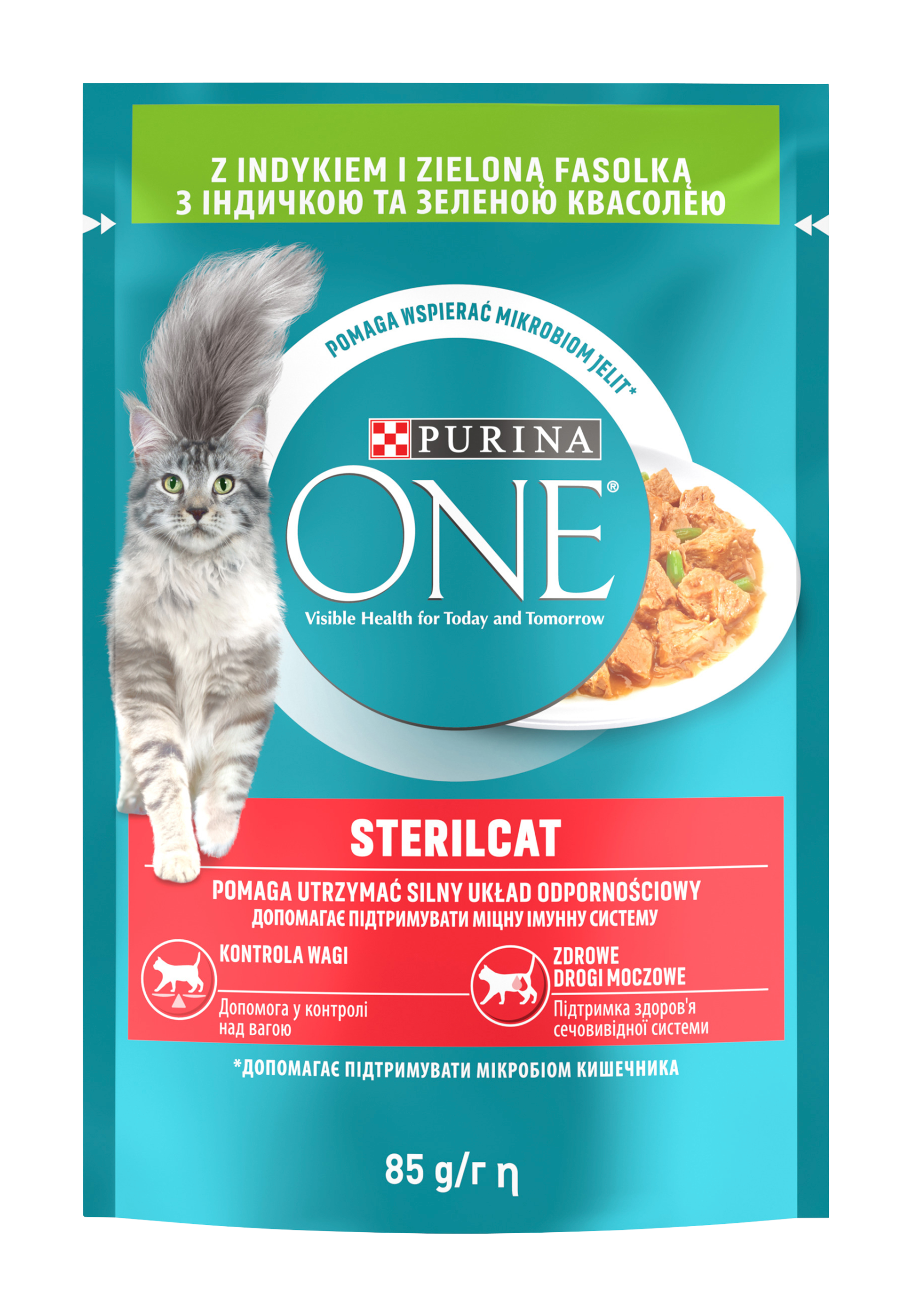 Kapsičky PURINA ONE jsou kompletní a vyvážené krmivo, které představuje ideální kombinaci vysoce kvalitní výživy a lahodné chuti. Bylo vyvinuto, aby pomáhalo podporovat zdravý střevní mikrobiom - rovnováhu mikroogranismů, která je důležitá pro dobré zažívání a celkovou pohodu vaší kočky. Od dobrého zažívání a imunitního systému až po lesklou srst můžete sledovat viditelné výsledky na zdraví vaší kočky dnes i zítra.