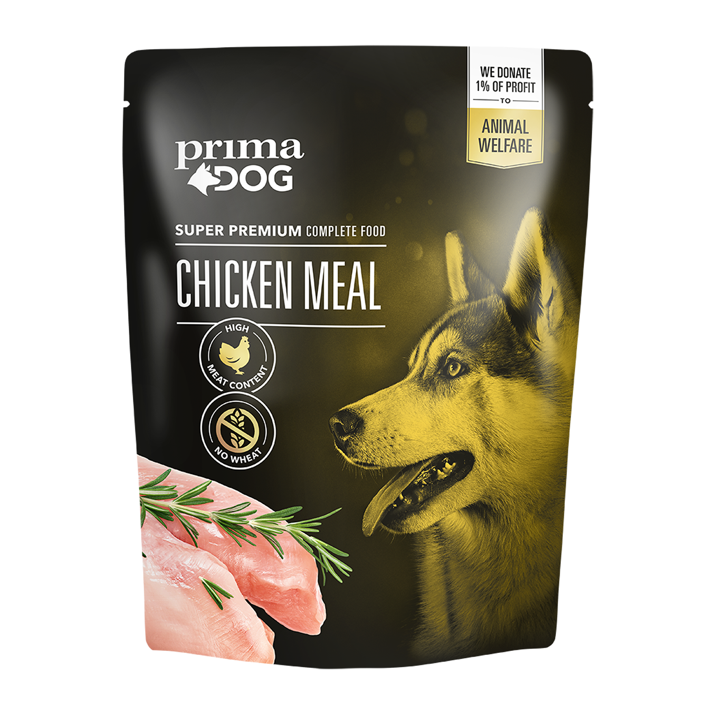 PrimaDog s kuřecím je mokré krmivo s masem vhodné pro každého psa. Tímto kompletním krmivem můžete svému psovi nahradit suchou stravu nebo mu ji vylepšit. Zpestřením stravy podpoříte nejen jeho střevní pohodu, ale můžete tak tím i dodat obohacující kmen střevních bakterií, které mohou například pomoci předcházet alergiím. Krmivo je vyrobené z čerstvého masa, bez pšenice, sóji, umělých barviv a aromat a jeho šťavnatost přiláká k misce i vybíravého psa. Toto vysoce kvalitní mokré krmivo je také ideální jako odměna nebo jako svačina na cesty, protože neotevřené balení zůstává čerstvé i při pokojové teplotě.