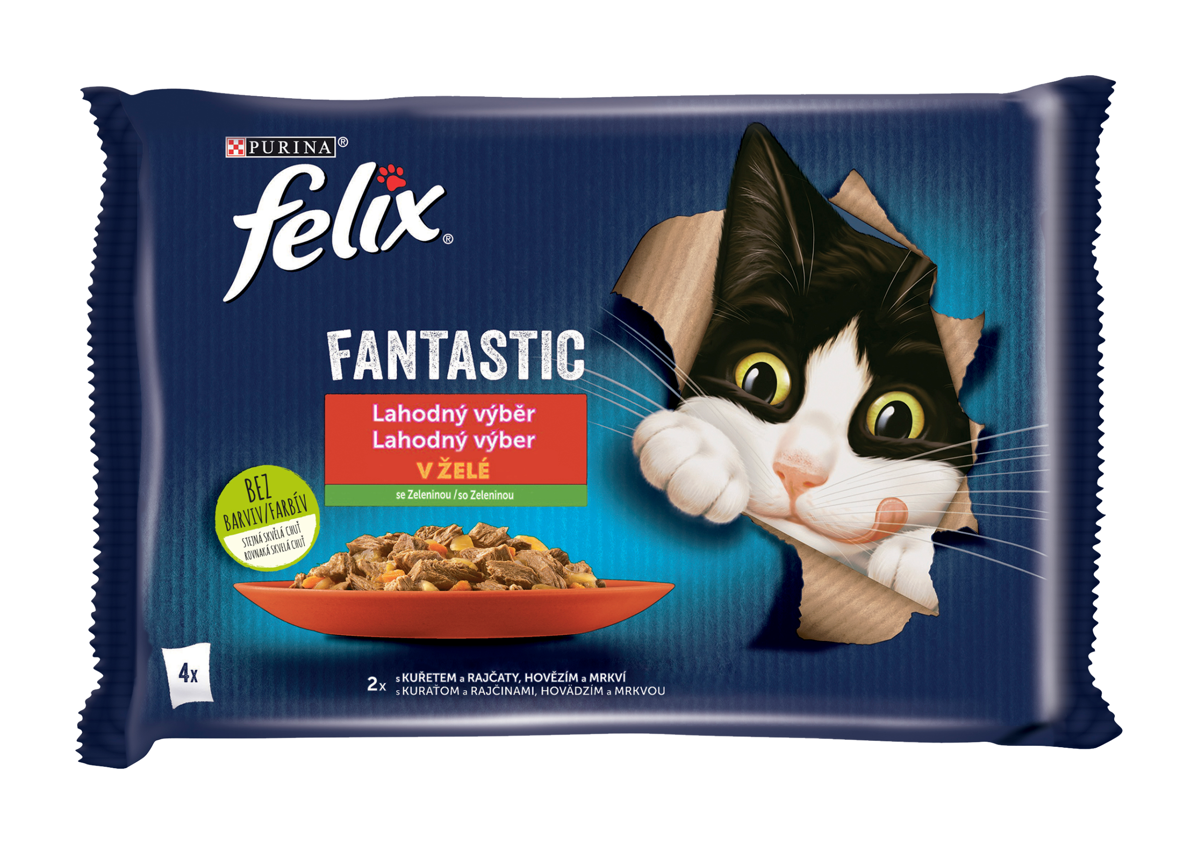 Kompletní krmivo pro dospělé kočky FELIX® Fantastic je řada neodolatelných krmiv, která vypadají, voní a chutnají tak lahodně, jako jídlo, které byste sami uvařili. Každá receptura, vyrobená z kvalitních surovin, obsahuje křehké kousky v želé, aby se vaše kočka mohla do chutného krmiva pořádně zakousnout! Zároveň jsou zdrojem omega-6 mastných kyselin a mají správnou kombinaci vitamínů, aby udržely vaši kočku plnou energie a připravenou k uličnictví! Jsou plná dobrot a uspokojí 100 % denních potřeb vaší kočky, když jsou podávána podle krmného návodu. To není všechno! FELIX Fantastic je dostupný v široké řadě lahodných receptur ve šťavnatém želé, aby každý den uspokojil lásku vaší kočky po rozmanitosti. Opravdu chutnají tak dobře, jak vypadají! FELIX je prostě neodolatelný! 100% kompletní a vyvážené Vitamíny D a E Zdroj omega-6 mastných kyselin, bez přidaných umělých konzervantů.