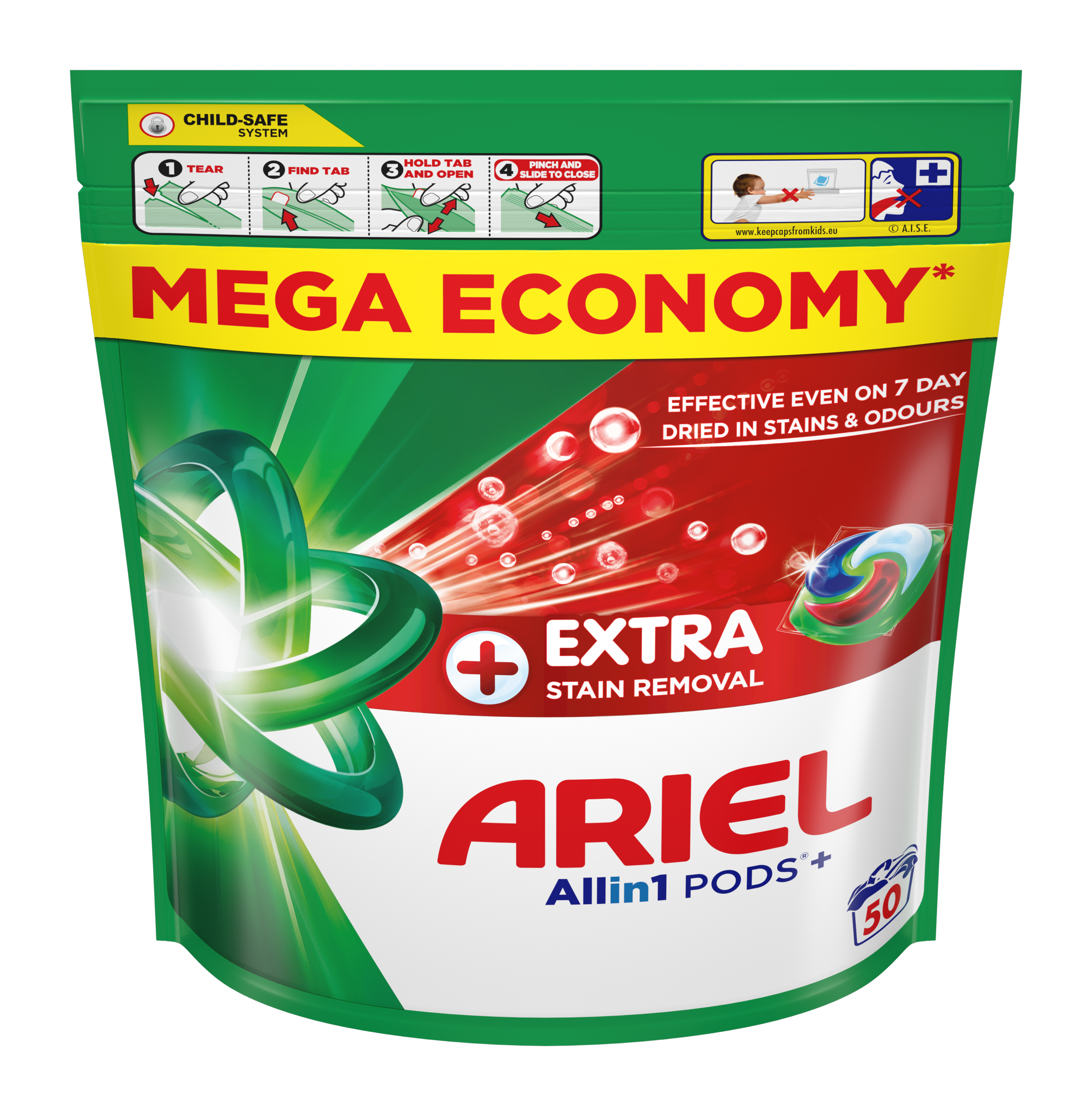 Ariel Allin1 PODS+ nabízí špičkovou technologii pro odstranění odolných skvrn a zápachu, což z něj činí nejlepší Allin1 PODS+ od značky Ariel. Díky speciální červené komůrce si poradí i se zaschlými skvrnami starými až 7 dní. Kapsle jsou navrženy tak, aby fungovaly skvěle i při praní na nižší teplotu, rychle se rozpouštěly i ve studené vodě a poskytovaly dokonalé výsledky. Nejlepších výsledků dosáhnete, když kapsli vložíte do prázdného bubnu a prádlo položíte až na ni.