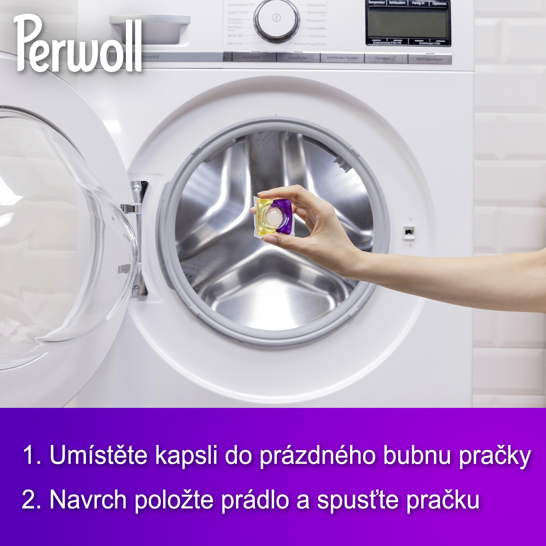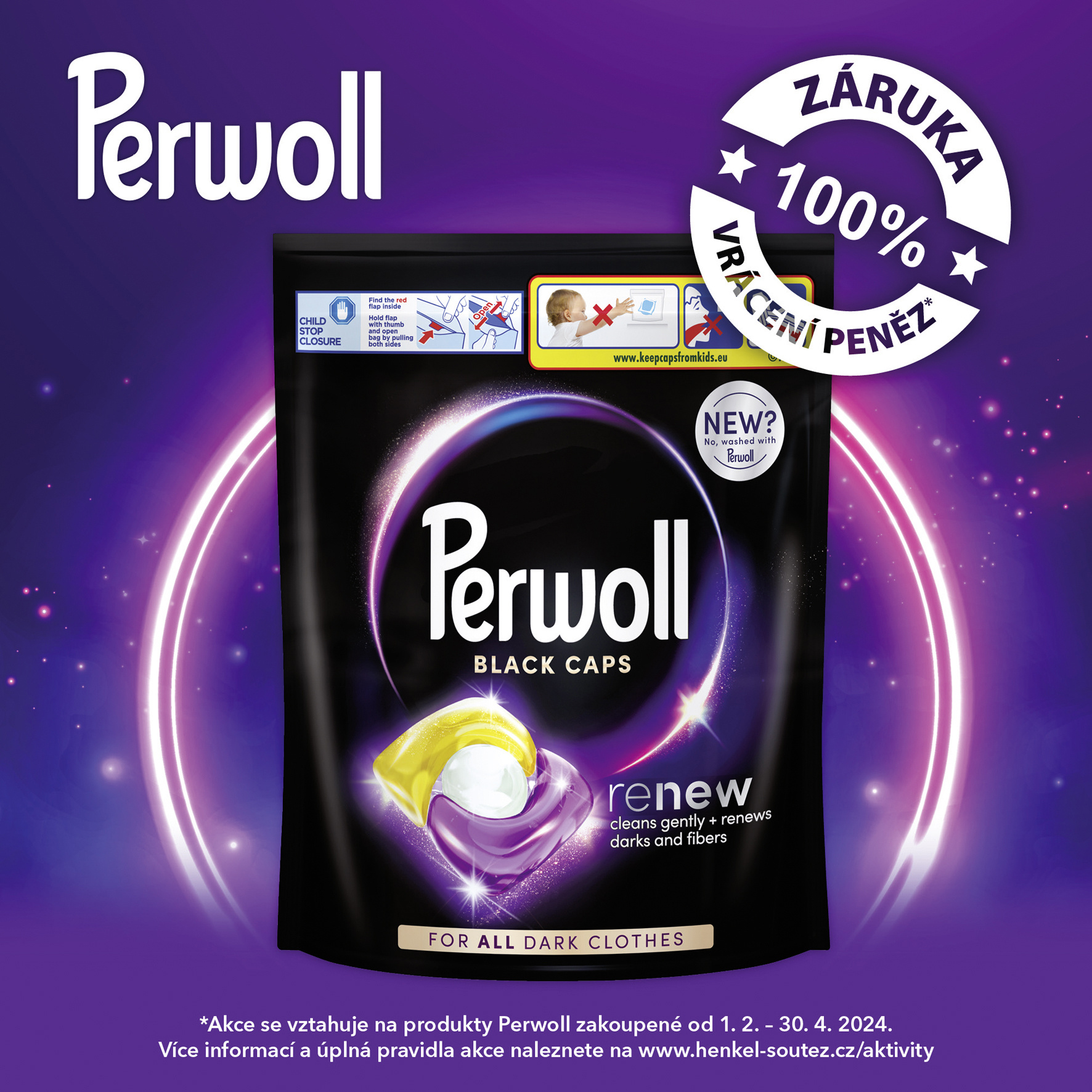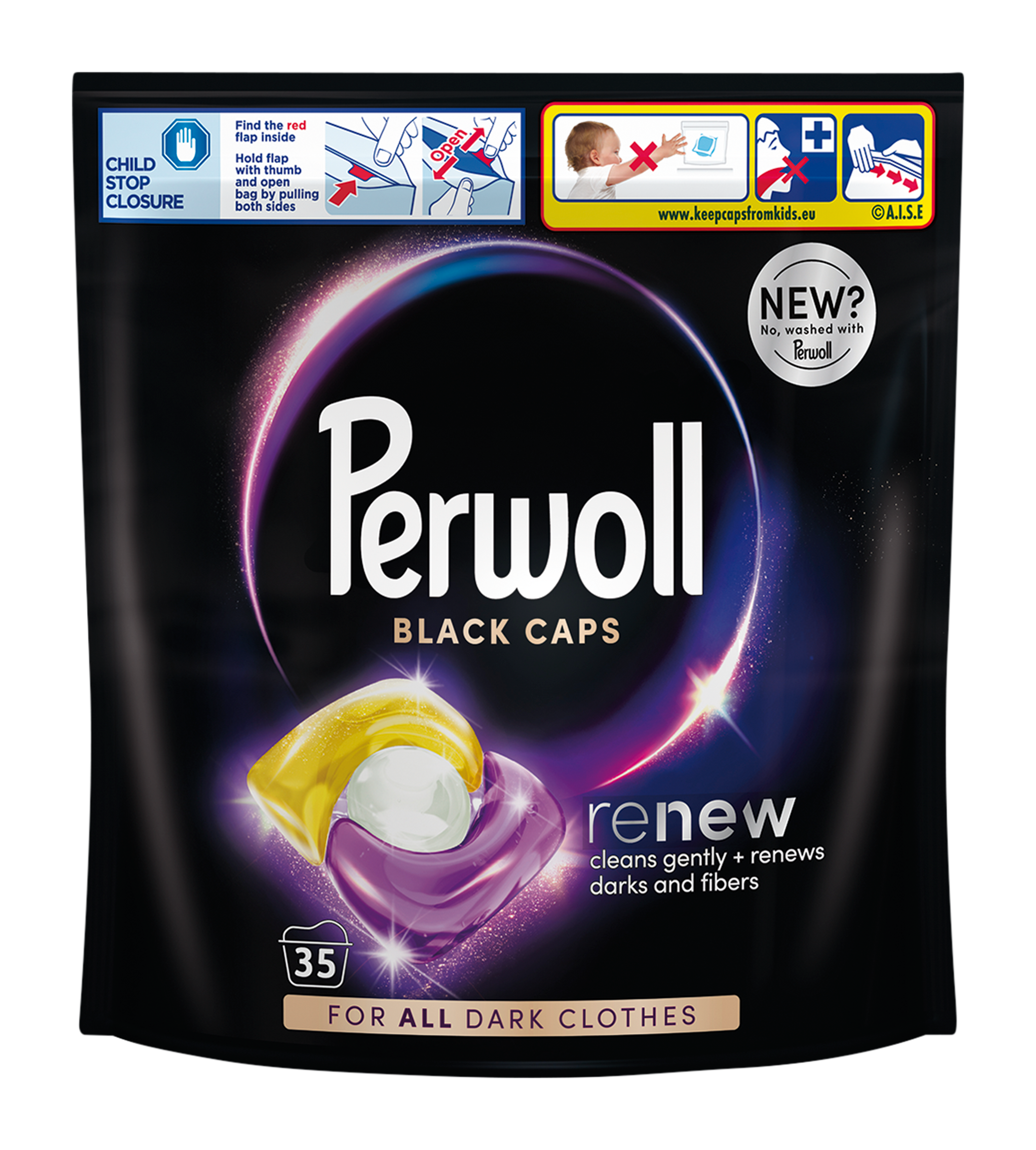 - Péče o barvy - Kapsle Perwoll Black jsou ideálním předdávkovaným pracím prostředkem pro tmavé oblečení — poskytují nejen šetrné praní, ale také oživují tmavé barvy!