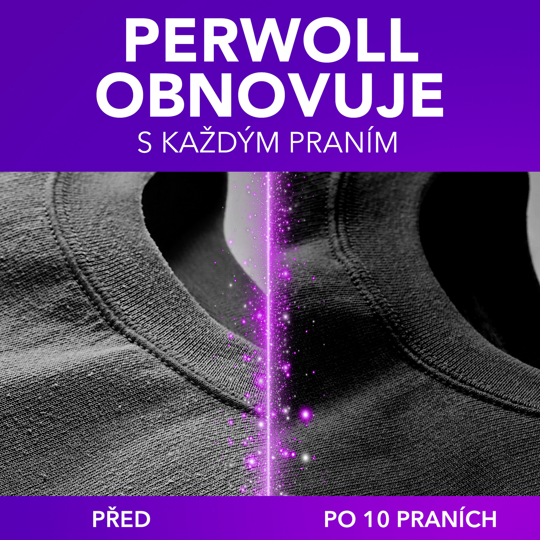 - Obnova vláken - Prací kapsle Perwoll Black díky svému složení uhlazují roztřepená vlákna a odstraňují žmolky. Vaše vybledlé a opotřebované tmavé oblečení tak bude vypadat jako nové