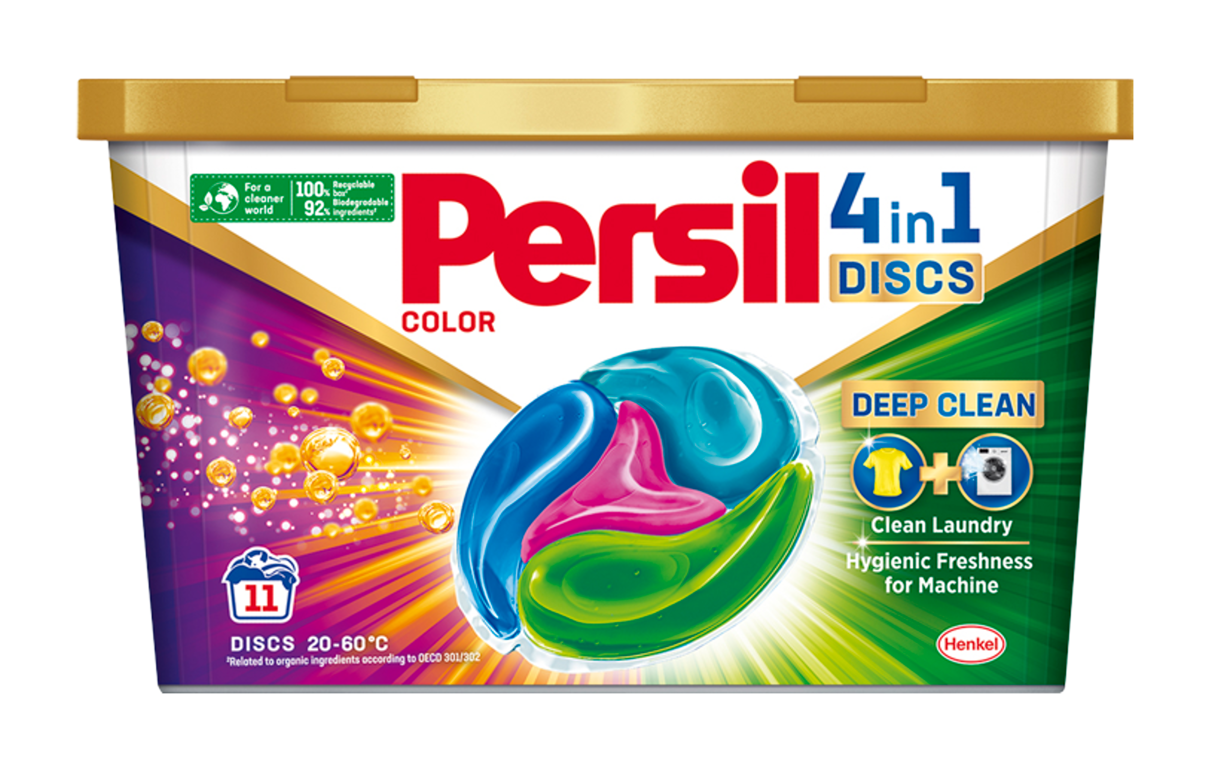 Unikátní složení: prací kapsle Persil Discs s jedinečnou technologií, která poskytuje čistotu do hloubky vláken a přitom zanechává barevnému prádlu dlouhotrvající jas a zářivost