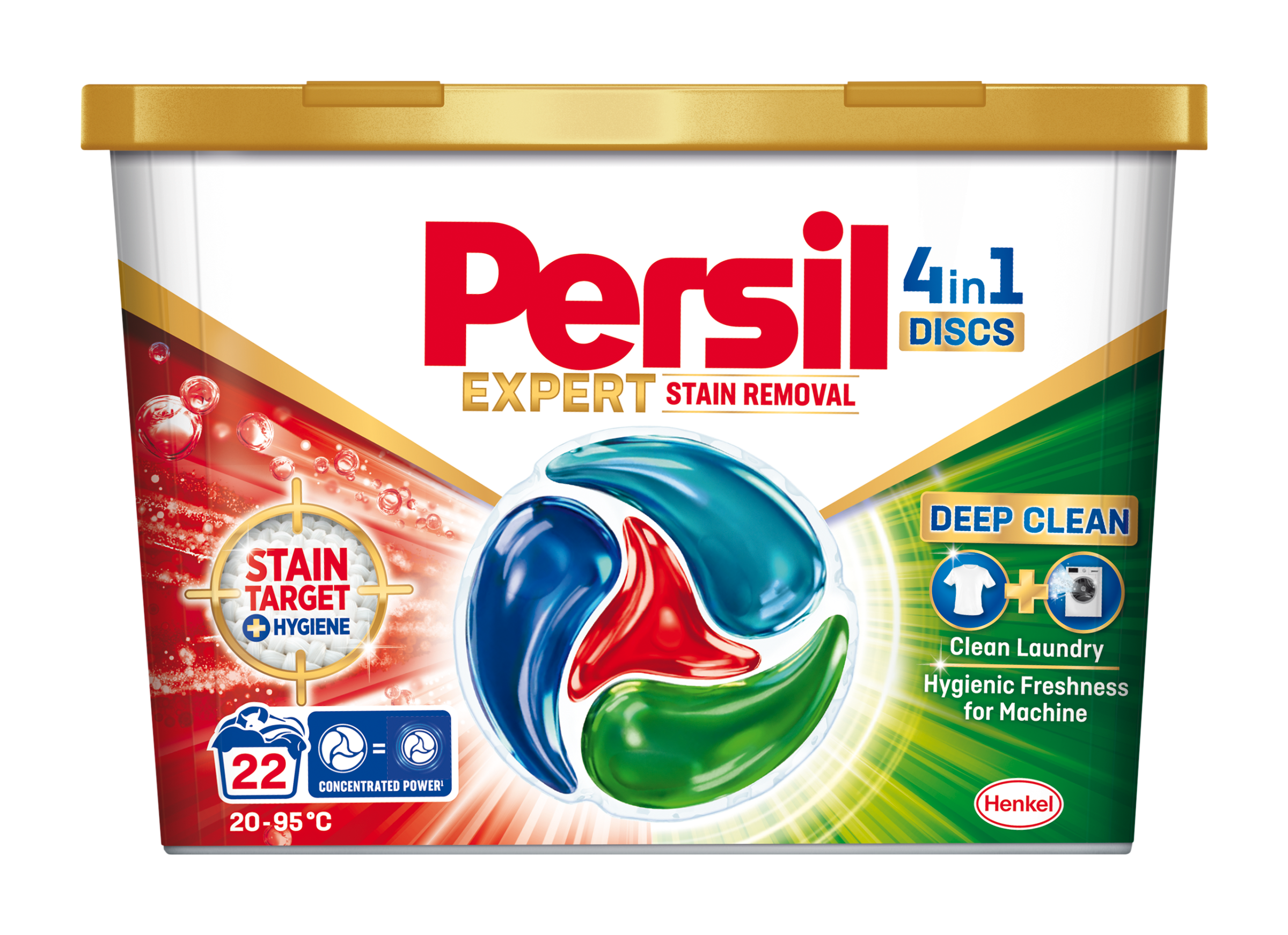 Užijte si hloubkovou čistotu prádla s nejlepším odstraněním skvrn od značky Persil. Dokonce i po vyprání mohou z pračky vycházet nepříjemné pachy, protože při každém praní se časem hromadí odolné nečistoty uvnitř pračky. Naštěstí proti odolným zbytkům nečistot účinně bojuje prací prostředek Persil Deep Clean. Persil představuje více než jen odstranění skvrn z oblečení, výkonný univerzální gelový prací prostředek na oděvy. Persil je nyní vylepšen tak, aby poskytoval hloubkové čištění prádla a hygienicky svěží pračku. Jedinečné složení působí hluboko ve vláknech, aby odstranilo i ty nejodolnější skvrny. Prací kapsle Persil Discs jsou navrženy tak, aby poskytovaly více než jen svěží oblečení, působí ještě hlouběji v mechanismu pračky a účinně odstraňují nepříjemné pachy. Pro čistší svět: Odolné vůči skvrnám, šetrné k planetě, složení obsahuje 92 % biologicky odbouratelných složek* a je vyráběno ve 100% recyklovatelném obalu. Účinné při nízkých teplotách - praní ve studené vodě začíná při 20 °C, aby se šetřila energie při každém praní. Nyní i v budoucnu se Persil zavázal poskytovat skutečně hloubkové čištění prádla a přitom být šetrný k planetě. Šetřete energii díky silnému složení Persil Discs 4v1, které přináší efektivní výsledky i při plné pračce a při nízkých teplotách.
