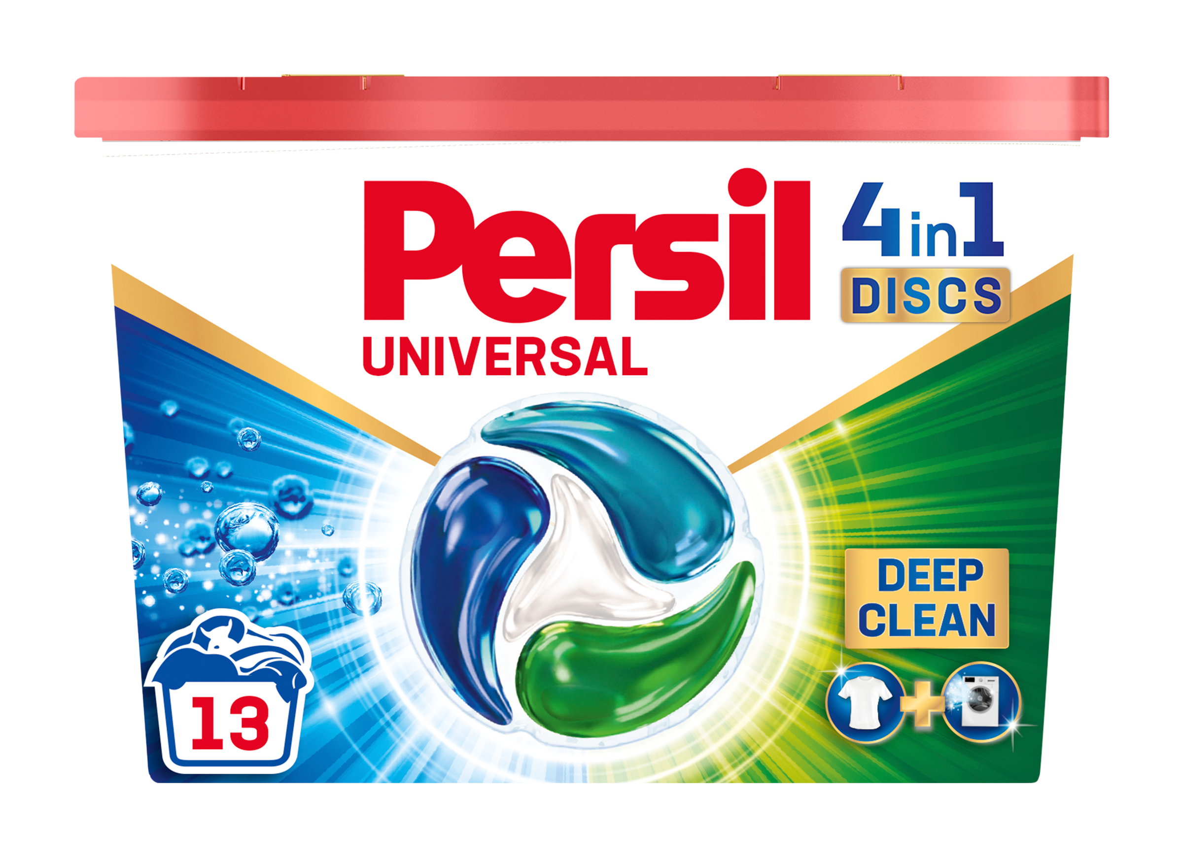 Kapsle na praní Persil Discs 4v1 Universal kombinují hloubkové čištění, odstranění skvrn, péči o vlákna a dlouhotrvající svěžest v jediné kapsli. Výkonná čtyřkomorová gelová kapsle Persil 4v1 je nyní kompaktovaná pro vynikající výkon a nižší dopad na životní prostředí díky nižšímu množství použitých materiálů. Jedinečné složení pracího prostředku proniká hluboko do vláken, kde rozloží i ty nejodolnější skvrny a odstraní je. Kapsle účinně čistí nejen vaše oblečení, ale také působí hluboko uvnitř mechanismu pračky a odstraňuje nečistoty, které mohou způsobovat nepříjemný zápach.