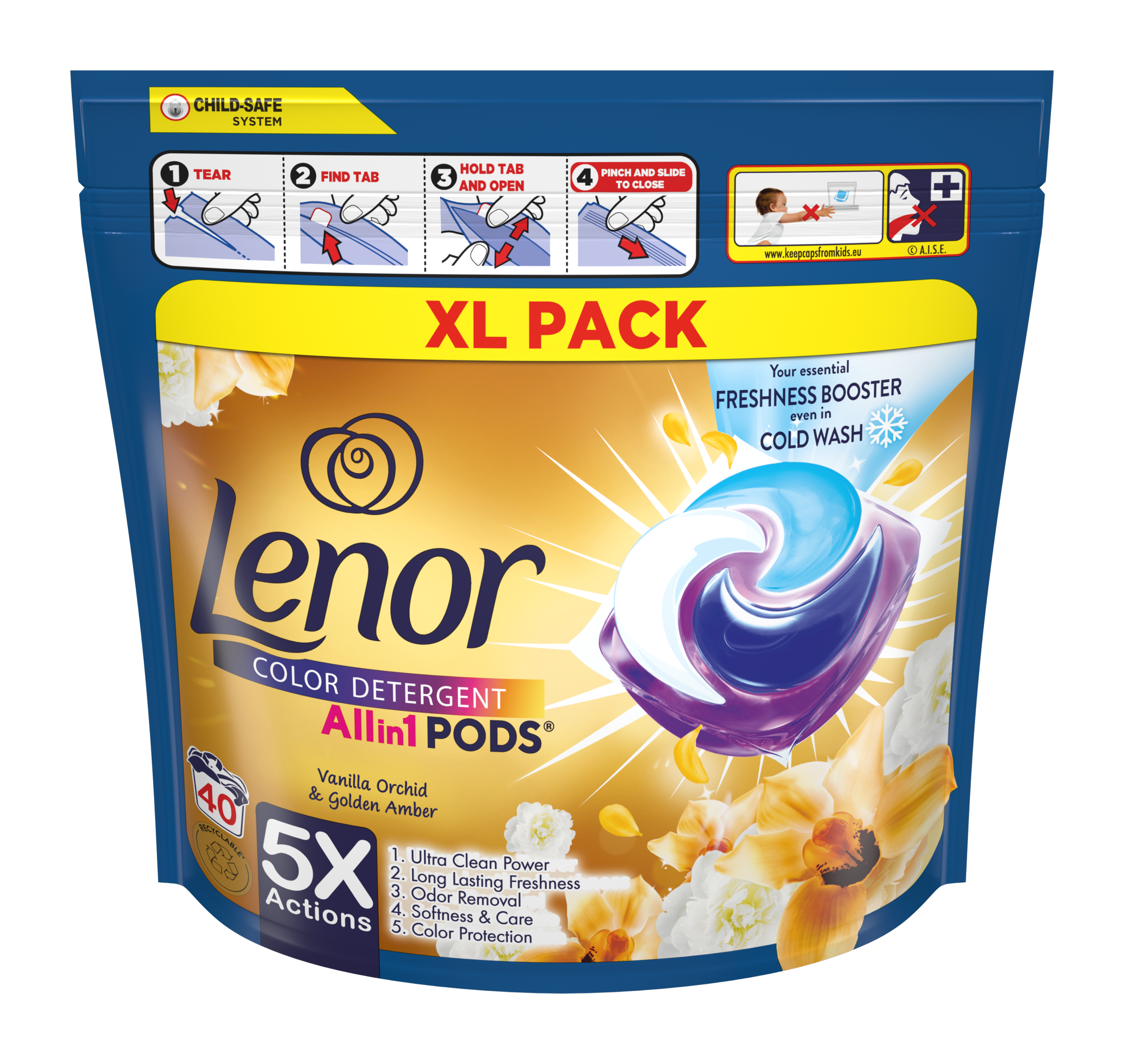 - Lenor Gold Orchid Allin1 PODS® kapsle na praní s ultra prací silou pro hygienicky důkladnou čistotu a svěží vůni ložního prádla
