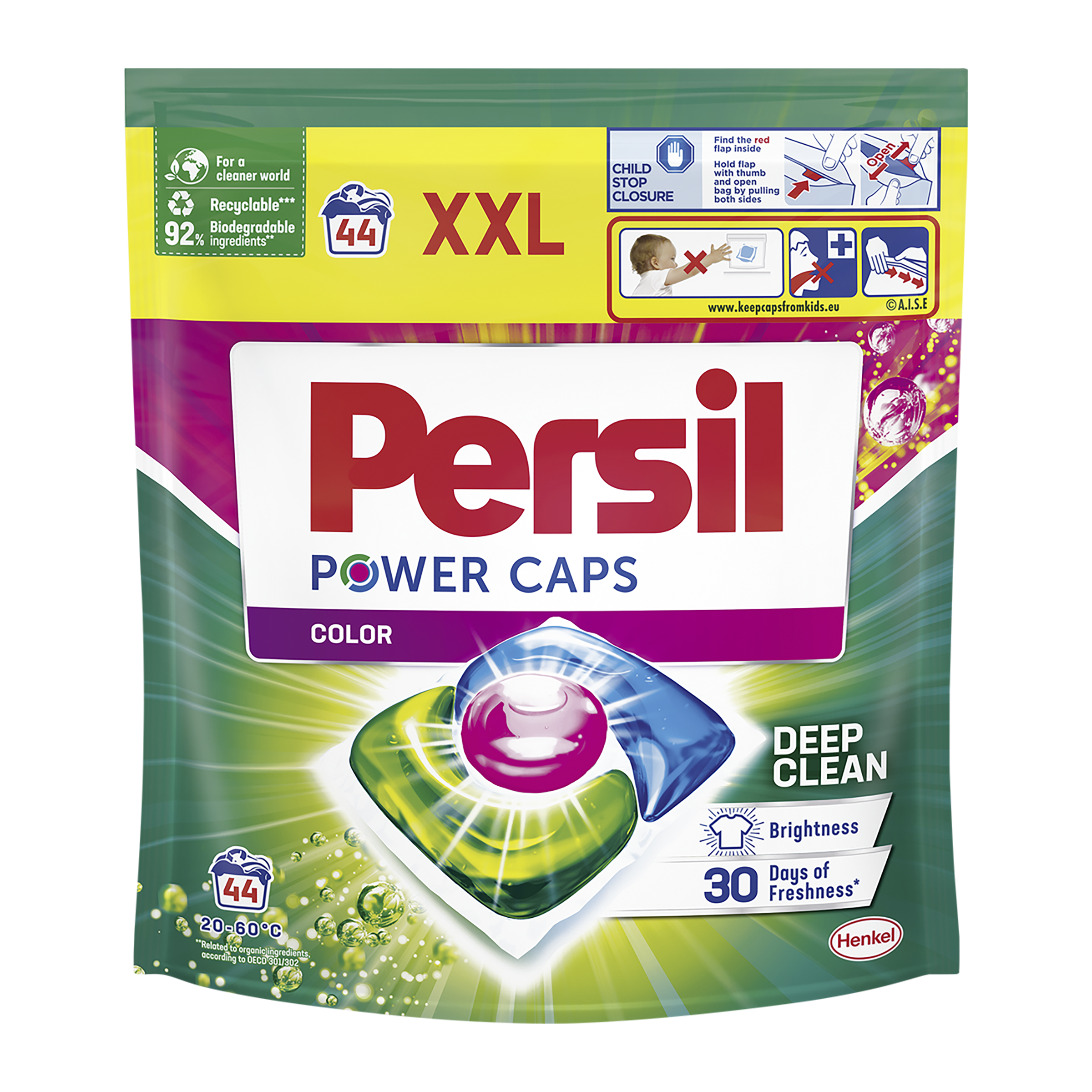 Kapsle na praní Persil Power Caps s technologií Deep Clean obsahují jedinečnou kombinaci aktivních složek, které působí proti odolným skvrnám. Prací prostředek proniká hluboko do vláken a odstraňuje i ty nejmenší molekuly špíny pro dokonalý výsledek a zářivě čisté oblečení. Dopřejte si dokonalou čistotu a dlouhotrvající svěžest Persil. Persil Power Caps jsou účinné i při praní na nízké teploty, už od 20 °C. Pro čistější svět jsou prací kapsle dodávány v recyklovatelném obalu. Chrání nejen oblečení, ale i planetu. Složení pracího gelu v kapslích obsahuje 92 %** biologicky rozložitelných složek. Navíc je efektivní i při praní již od 20°C, a napomáhá nám tak šetřit energii.