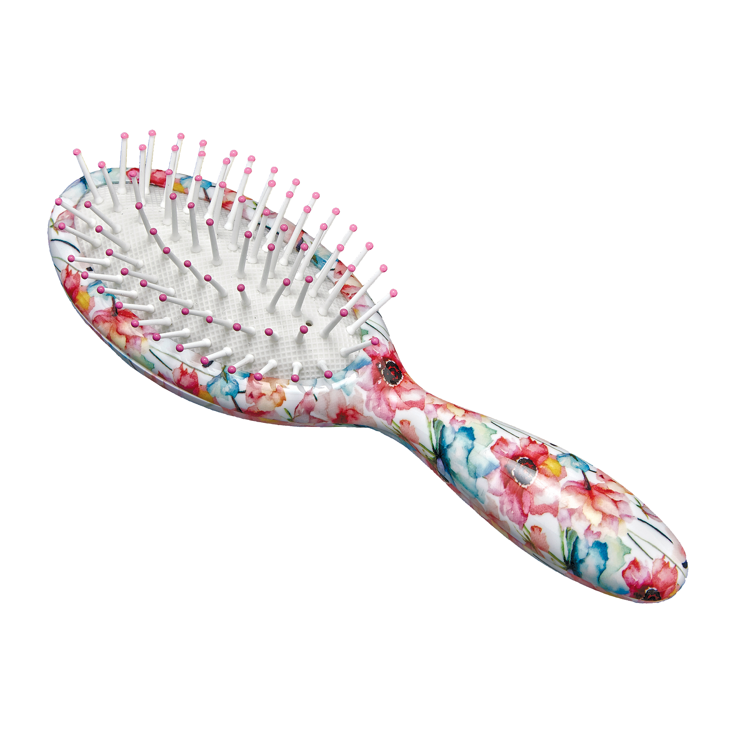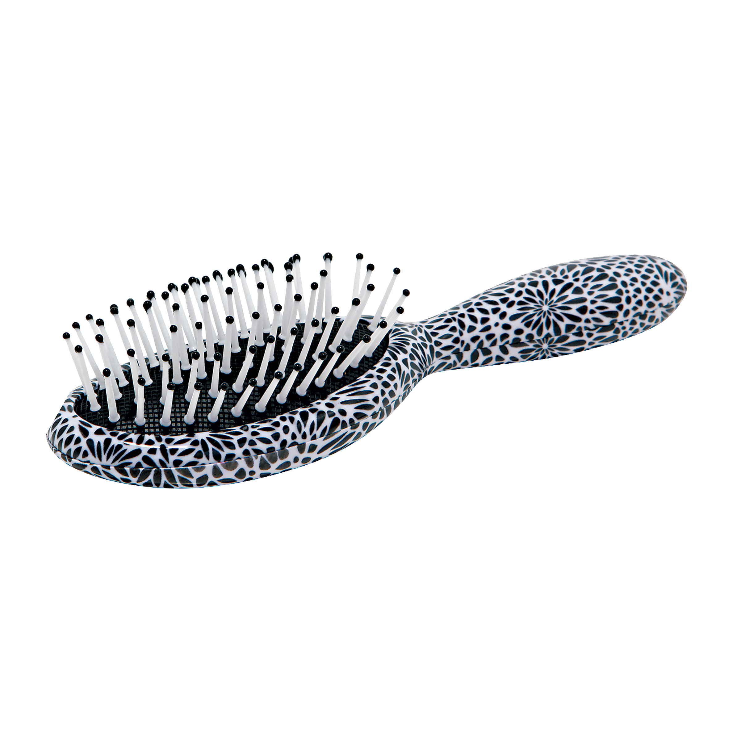 Praktický kartáč na vlasy, který rozmotá i ty nejzacuchanější vlasy. Jeho zaoblené hroty jemně masírují pokožku hlavy a stimulují krevní oběh. Díky své kompaktní velikosti se tento kartáč na vlasy perfektně hodí do kosmetické tašky či příručního zavazadla a je tak ideálním společníkem na cestách.