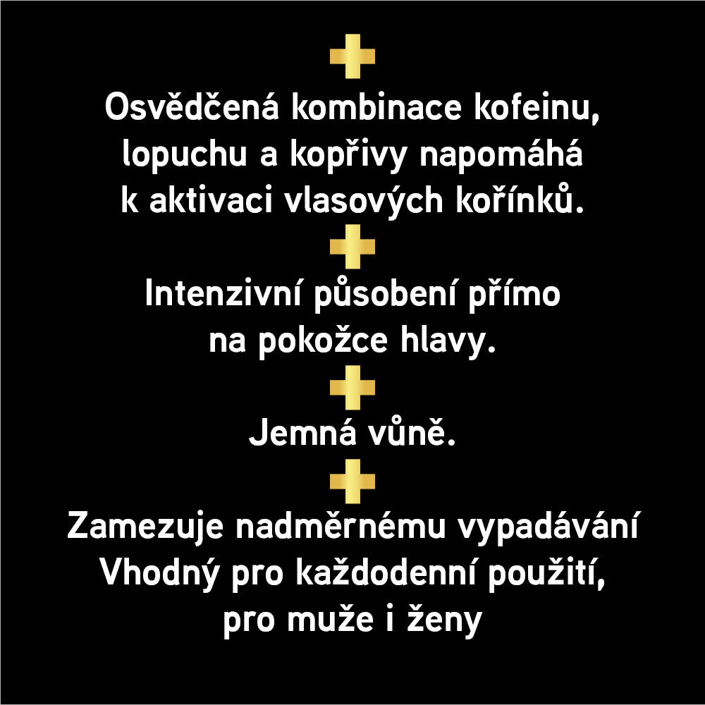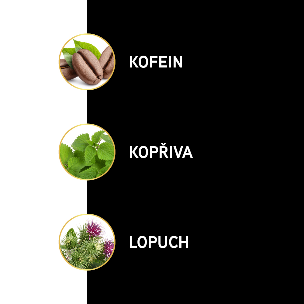 Kofein zlepšuje mikrocirkulaci a aktivuje vlasové folikuly, čímž prodlužuje růstovou fázi vlasu a podporuje vznik nových vlasů.