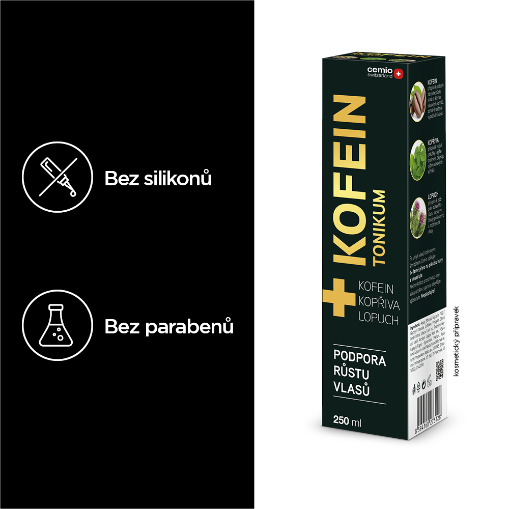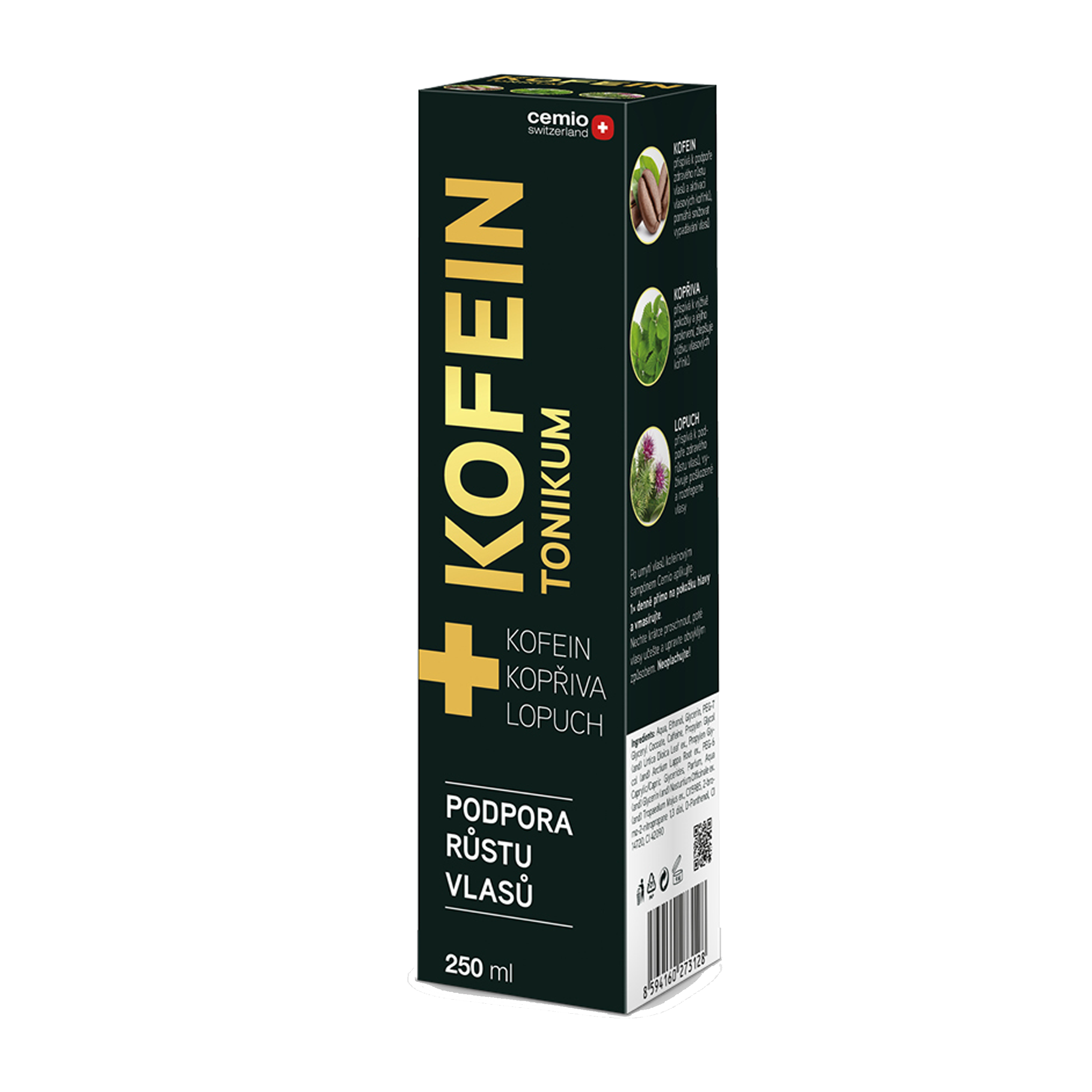 Cemio Kofein tonikum je intenzivní bezoplachová péče, která aktivně stimuluje vlasové kořínky a podporuje růst zdravějších, silnějších vlasů. Díky unikátní kombinaci kofeinu, lopuchu, kopřivy a panthenolu zlepšuje prokrvení pokožky hlavy, vyživuje folikuly a udržuje vlasovou pokožku v dobré kondici. Tonikum je vhodné pro každodenní použití a pro všechny, kdo řeší nadměrné padání vlasů.
