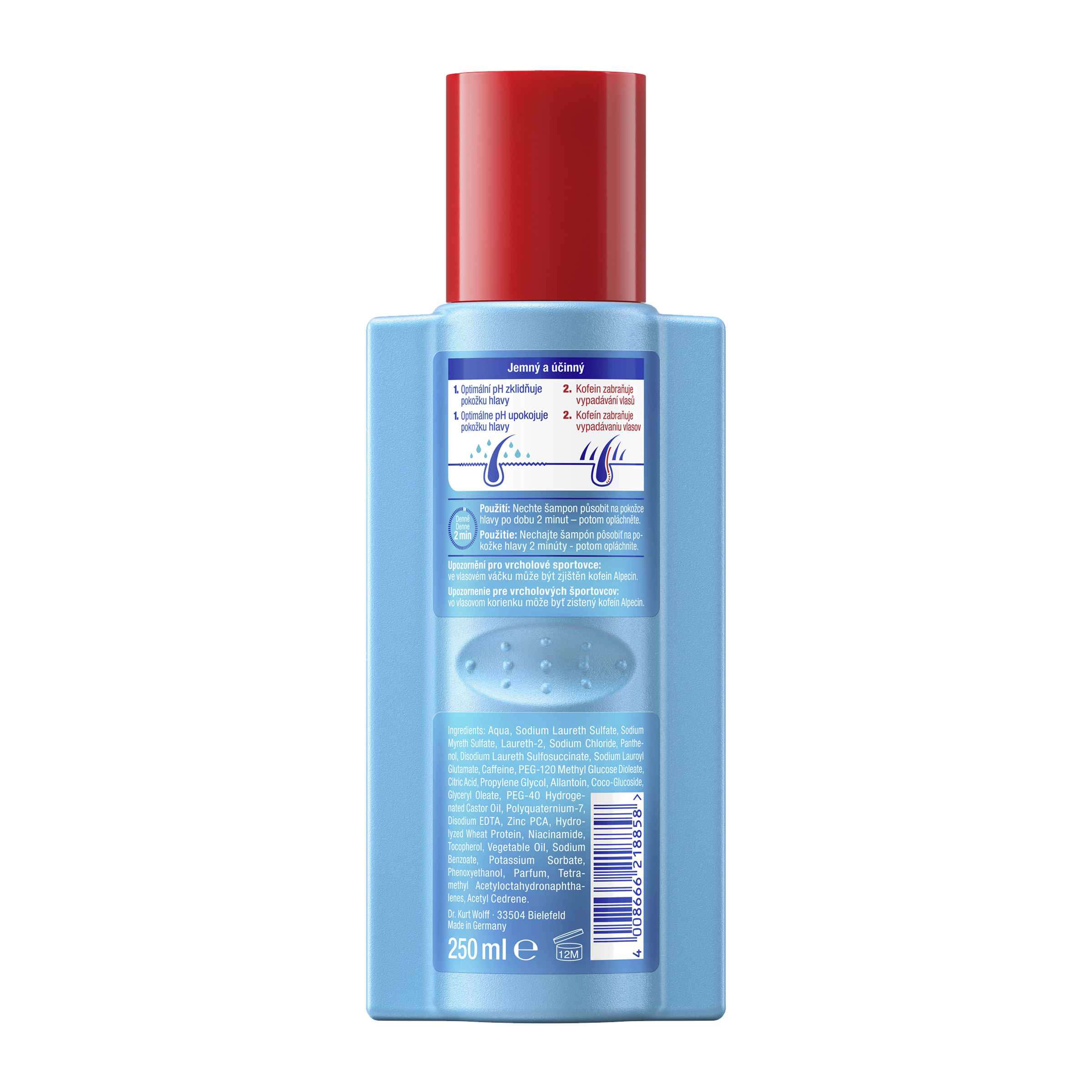 Upozornění pro vrcholové sportovce: ve vlasovém váčku může být zjištěn kofein Alpecin.