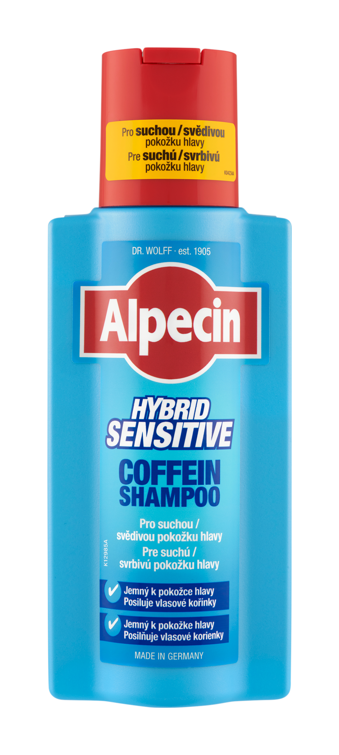 Více než jeden muž ze čtyř trpí tím, že má citlivou pokožkou hlavy. Svědění, suchost, začervenání nebo pocit napětí – pokožka hlavy reaguje obzvlášť citlivě v závislosti na dispozicích jednotlivých osob. Příčinou může být nedostatečná produkce mazových žláz, která ohrožuje přirozenou rovnováhu pokožky hlavy. To má za následek suchou, citlivou pokožku hlavy. Alpecin Hybrid kofeinový šampon byl vyvinut jako možné řešení tohoto problému. Šampon čistí vlasy velmi jemně a šetrně. Hydratuje a zklidňuje pokožku hlavy. Zároveň „palivo“ v podobě kofeinu stimuluje kořínky vlasů. Dochází tak k posilování vlasových kořínků a prevenci dědičného vypadávání vlasů.