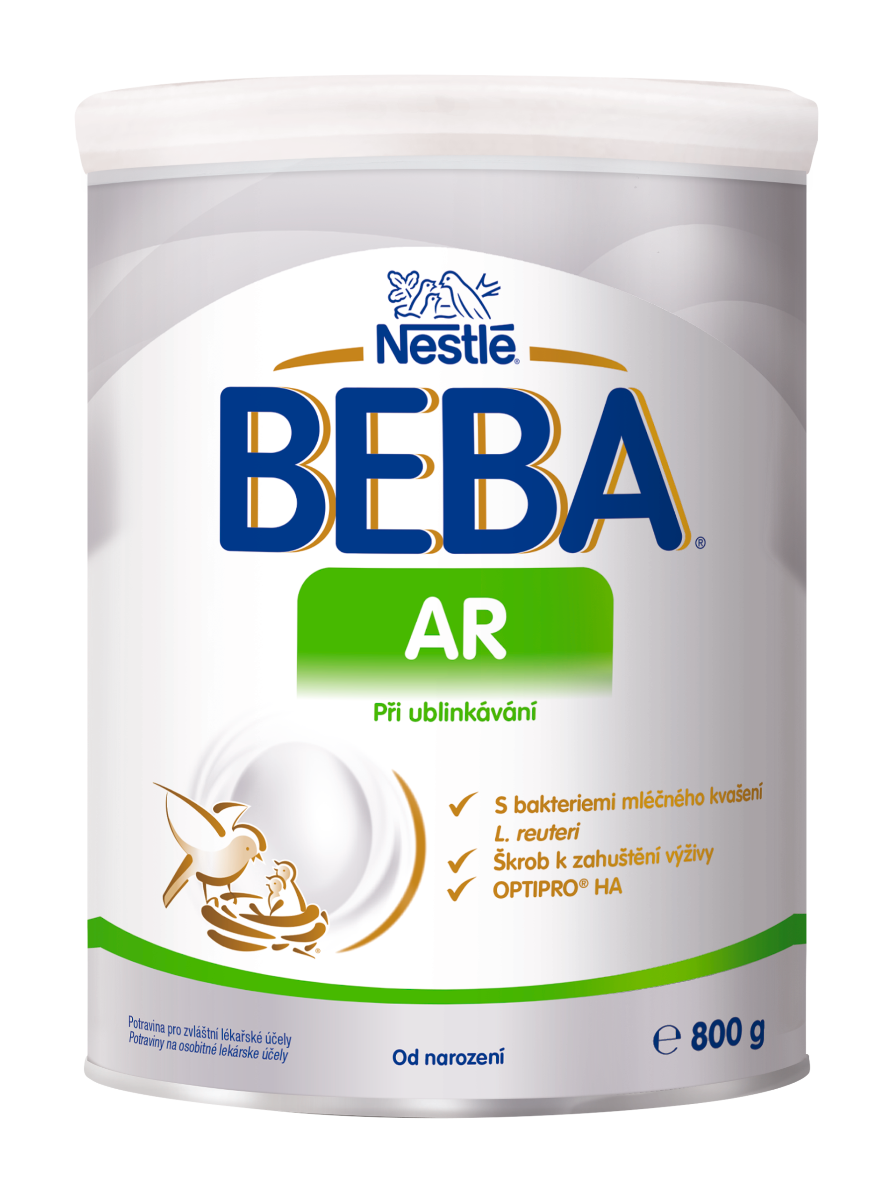 DŮLEŽITÉ UPOZORNĚNÍ: Dlouhodobé kojení je pro dítě nejlepší způsob výživy, proto mu dáváme přednost před výrobky kojenecké výživy. Nestlé BEBA AR by měla být podávána na základě doporučení lékaře nebo kvalifikovaného odborníka v oblasti dětské výživy. Výrobek nepodávejte kojencům s alergií na mléčné bílkoviny a galaktosémií. Nestlé BEBA AR je výživově kompletní potravina, vhodná jako jediný zdroj výživy. UPOZORNĚNÍ: Při krmení dítě držte vždy v náruči. Neponechávejte dítě bez dohledu, jinak může dojít k zalknutí.