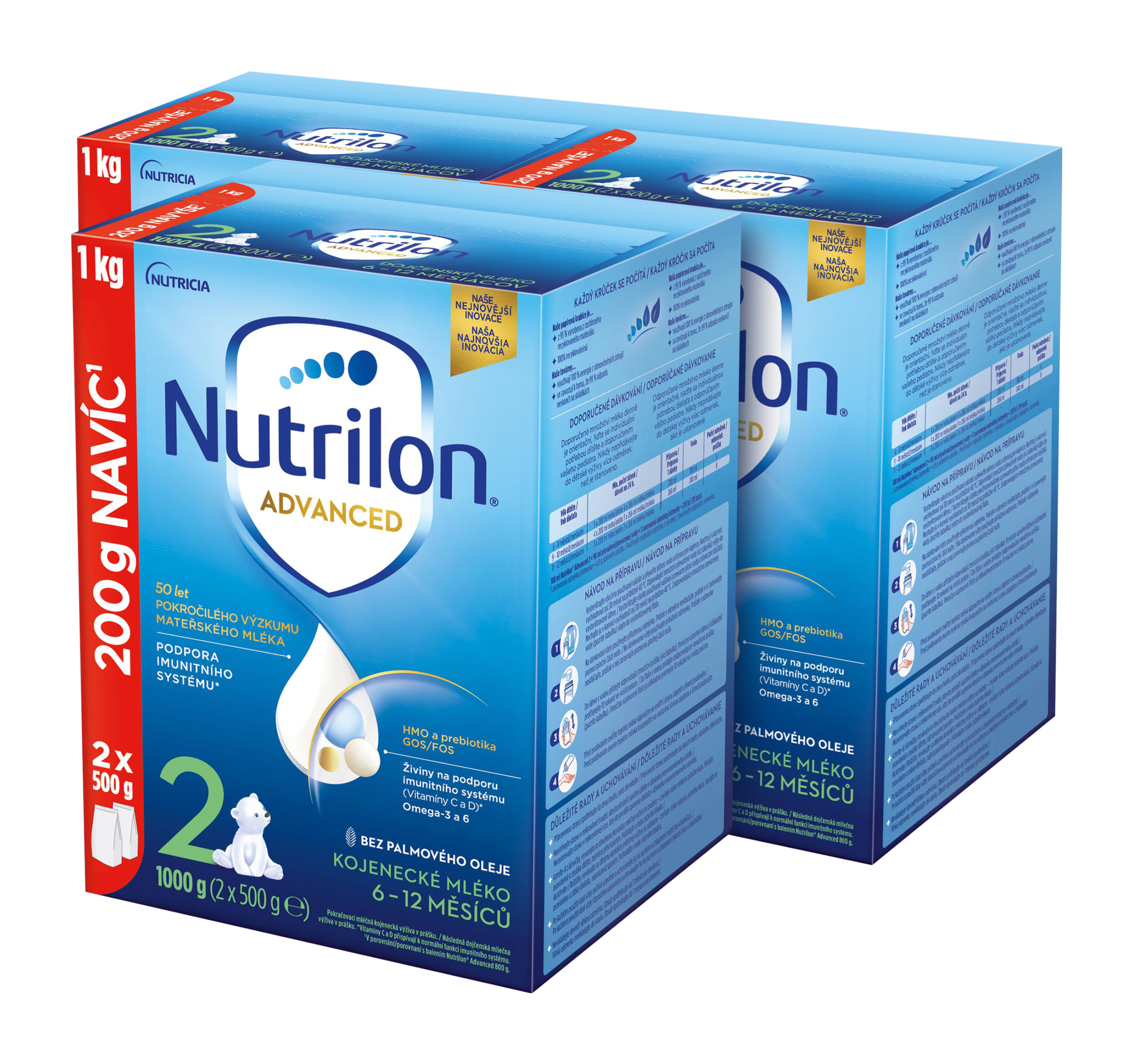 Objevte naši nejnovější inovaci mlék Nutrilon 2 Advanced, speciálně vyvinutou pro Podporu imunitního systému a normálního vývoje*. Naše jedinečné složení obsahuje naši patentovanou směs Prebiotik Gos/Fos a LCP**, oligosacharid mateřského mléka 3´GL (3´galaktosyllaktóza), který přináší náš unikátní proces výroby, vitamíny C a D, které přispívají k podpoře imunity* a také omega-3 mastnou kyselinu alfa-linolenovou pro podporu rozvoje mozku*. Naše inovovaná receptura je bez palmového oleje a také nově v cenově výhodném a 100% recyklovatelném DUO balení! Počátek života vašeho děťátka je výjimečné období. Je krásné, občas nevyzpytatelné, ale především hektické. Musíte se starat o spoustu věcí, a proto je důležité mít se na koho obrátit. Jsme tu pro vás. Naše výživově kompletní receptura* Tým našich vědců, včetně odborníků na imunitu, vyvinul naši recepturu s esenciálními živinami včetně vitamínů přirozeně se vyskytujících v mateřském mléce a dalšími objevy našeho vědeckého výzkumu. HMO a GOS/FOS Oligosacharid mateřského mléka (HMO) 3'GL¹. Prebiotika GOS/FOS napodobující funkci oligosacharidů v mateřském mléce. Živiny na podporu imunitního systému. Vitaminy C a D* přispívají k normální funkci imunitního systému. Omega-3 (ALA** a DHA)* ALA přispívá k normálnímu vývoji mozku a nervové soustavy. Omega-6 (ARA). 200 g navíc¹ ¹V porovnání s balením Nutrilon® Advanced 800 g. Naše papírová krabice je... - z 95 % vyrobena z rostlinného recyklovaného materiálu - 100 % recyklovatelná.