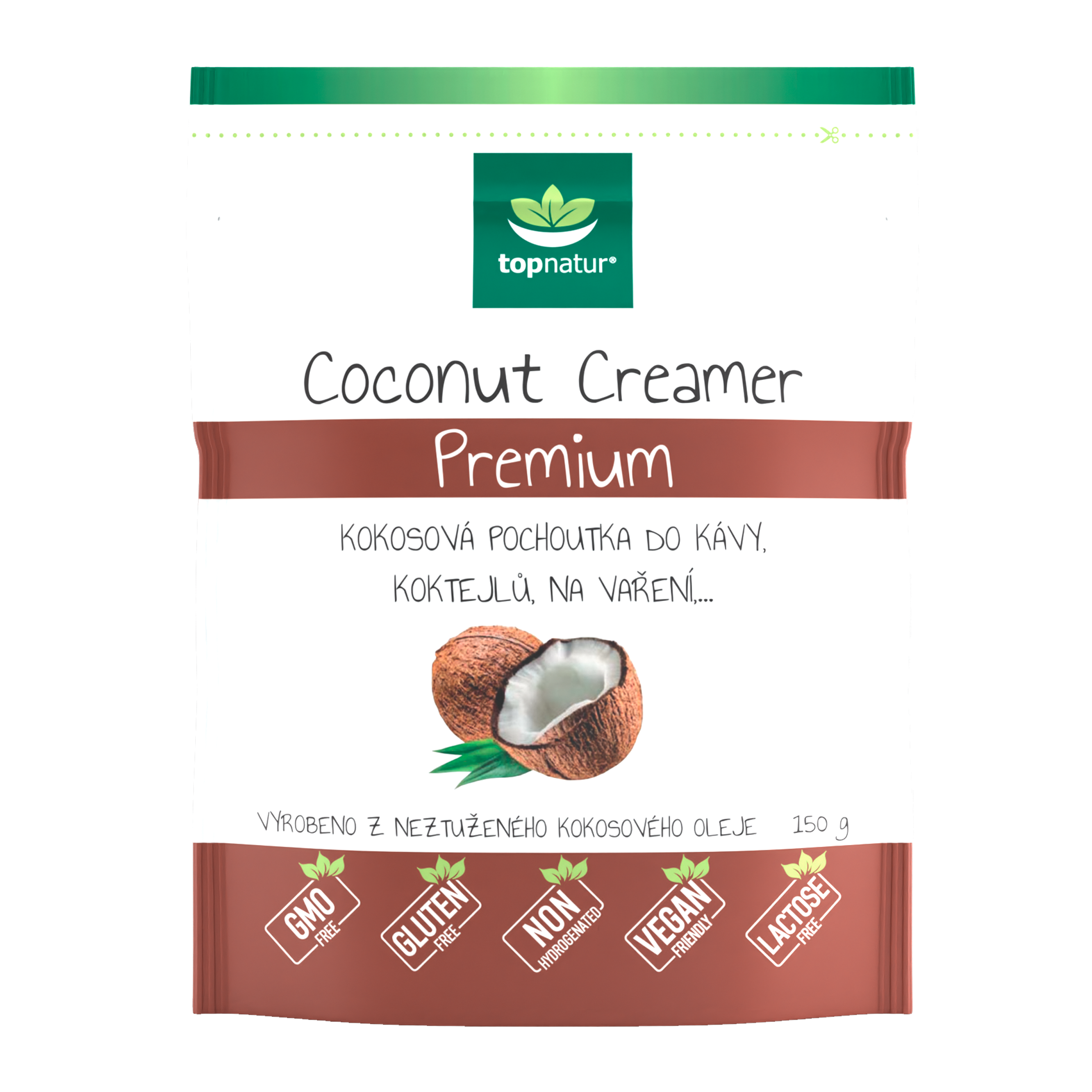 Sušený kokosový olej vhodný do kávy, pro přípravu koktejlů, ovocných smoothie nebo také k přípravě slaných nebo sladkých dezertů. Při výrobě jsme použili výhradně neztužený kokosový olej. Coconut Creamer Premium neobsahuje lepek, kasein ani laktózu, je vyroben z geneticky nemodifikovaných surovin a je vhodný pro vegany.