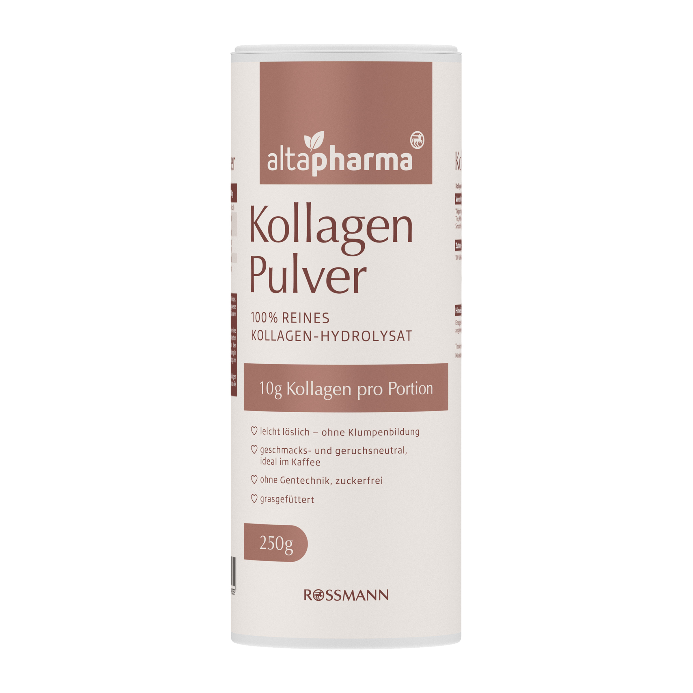 Kolagenový prášek altapharma zaujme svou čistou kvalitou bez přísad a pochází od dobytka krmeného trávou z pastevního chovu. Pro svou vynikající rozpustnost a neutrální chuť je ideální pro použití do nápojů. Ať už jako ranní rituál v kávě nebo v odpoledním proteinovém koktejlu! Díky malé velikosti peptidu je kolagenový prášek altapharma tělem velmi dobře absorbován. Obsahuje kolagenové peptidy typu I a III. Kolagen je pro naše tělo velmi důležitá bílkovina. Jako tzv. strukturální protein udržuje kůži a pojivovou tkáň elastickou a je součástí kostí, chrupavek, vazů a šlach.