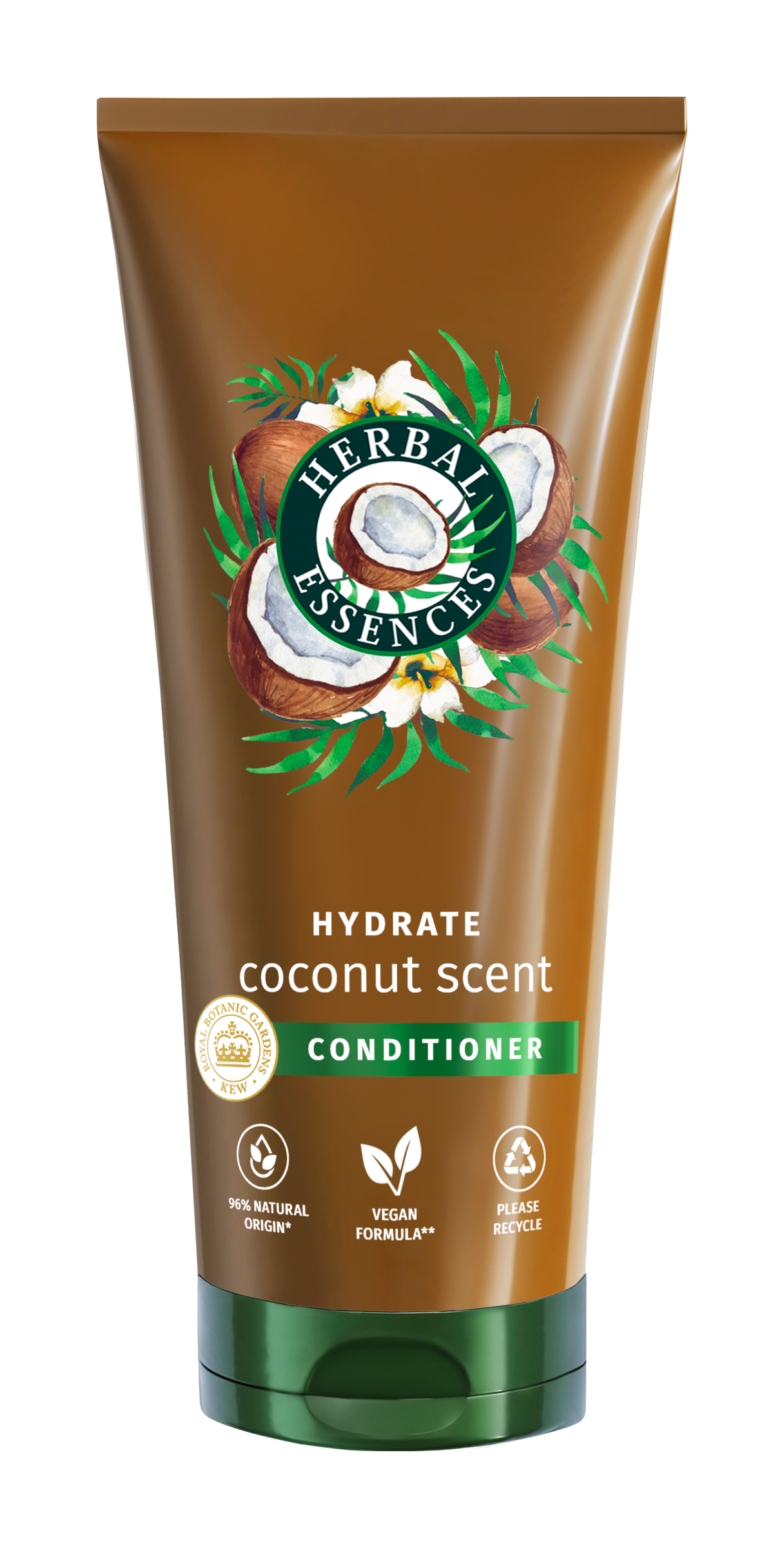 Vydejte se s jedním z našich nejlákavějších přírodních přípravků do tropického ráje. Hydratační kondicionér s kokosovou vůní Herbal Essences coconut scent hydrate pomáhá vyživovat velmi suché vlasy, propůjčí vám vnitřní pocit rovnováhy a zahltí vaše smysly příjemnou kokosovou vůní. Naše směs rostlinných výživných látek je obohacena o kokosový extrakt, vyznačuje se veganským složením a je určena k hydrataci vysušených vlasů. Luxusní krémové složení lze použít dvěma způsoby: jako oplachový kondicionér, nebo jako kondicionér bezoplachový, který necháte působit, abyste si mohli déle užívat krémovou hydrataci, již přináší. Kondicionér obsahuje pečlivě vybrané složky přírodního původu, a proto budete moci ve své koupelně využívat ohromující sílu přírody. Dopřejte svým vlasům přirozenou krásu a relaxujte díky kompletní péči s hydratační kolekcí s kokosovou vůní.