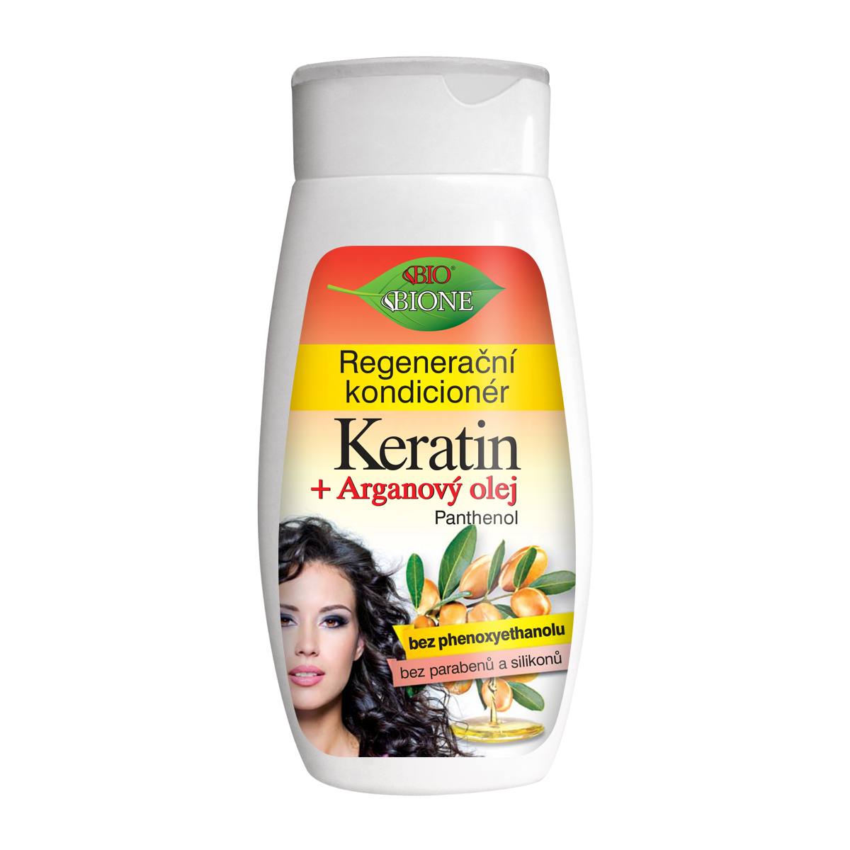 Keratinový hydrolyzát z ovčí vlny obsahuje aminokyseliny shodné s aminokyselinami lidských vlasů. Používáním kondicionéru Keratin dochází k doplnění vlasové struktury narušené slunečním zářením, barvením, trvalou ondulací, fénováním, odbarvováním a stárnutím. Vlasy se zpevní, vrátí se jejich pružnost a lesk, netřepí se. Kondicionér je doplněn o regenerační panthenol a o rostlinný lecithin. Lesk a hladkost vlasů jsou podpořeny přídavkem vzácného arganového oleje. Po aplikaci prostředku dochází ke zvětšení objemu účesu a ke zvýšení lesku vlasů. Kondicionér je vyroben jako velmi jemný. Vykazuje vysokou rozčesávatelnost vlasů, zvětšuje jejich objem. Obsah lahvičky vystačí až na 100 použití!