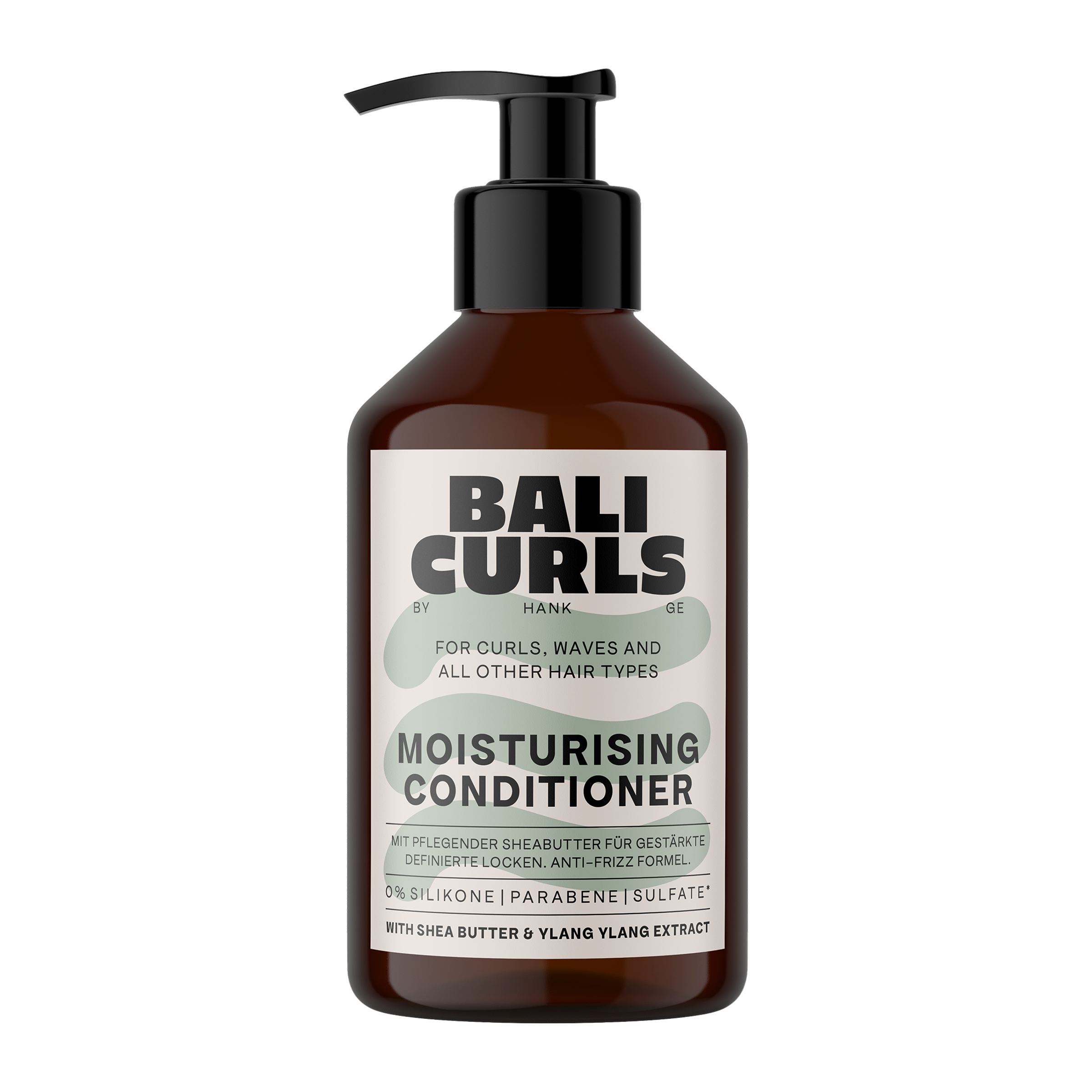 Bali Curls hydratační kondicionér s bambuckým máslem a ylang ylang. Hluboce hydratuje a vyživuje vlasy. Značka nabízí komplexní řešení pro všechny typy vlasů, jež jsou suché, krepaté, lámavé, vlnité či kudrnaté, a to bez zbytečné chemie, parabenů, sulfátů, silikonů či alkoholu. Kondicionér má perfektní slip, vlasy jdou při nanesení velmi lehce rozčesat. Nezatěžuje a je vhodný i pro jemné vlasy. Bali Curls produkty jsou vhodné pro vlasy vlnité, kudrnaté, ale i pro vlasy, které jsou suché, krepaté, lámavé, barvené a celkově unavené.