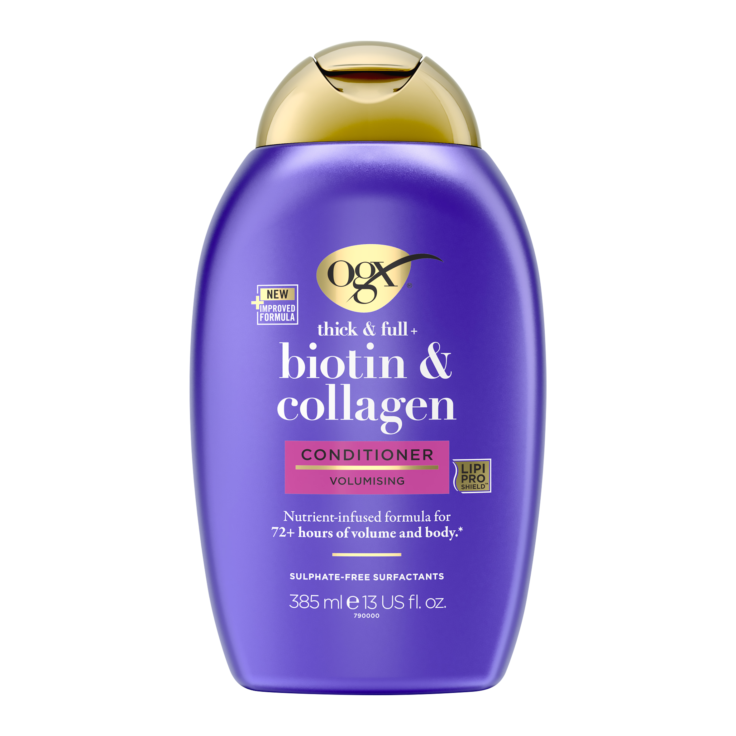 Kondicionér OGX Biotin & Collagen pro bohaté a husté vlasy.