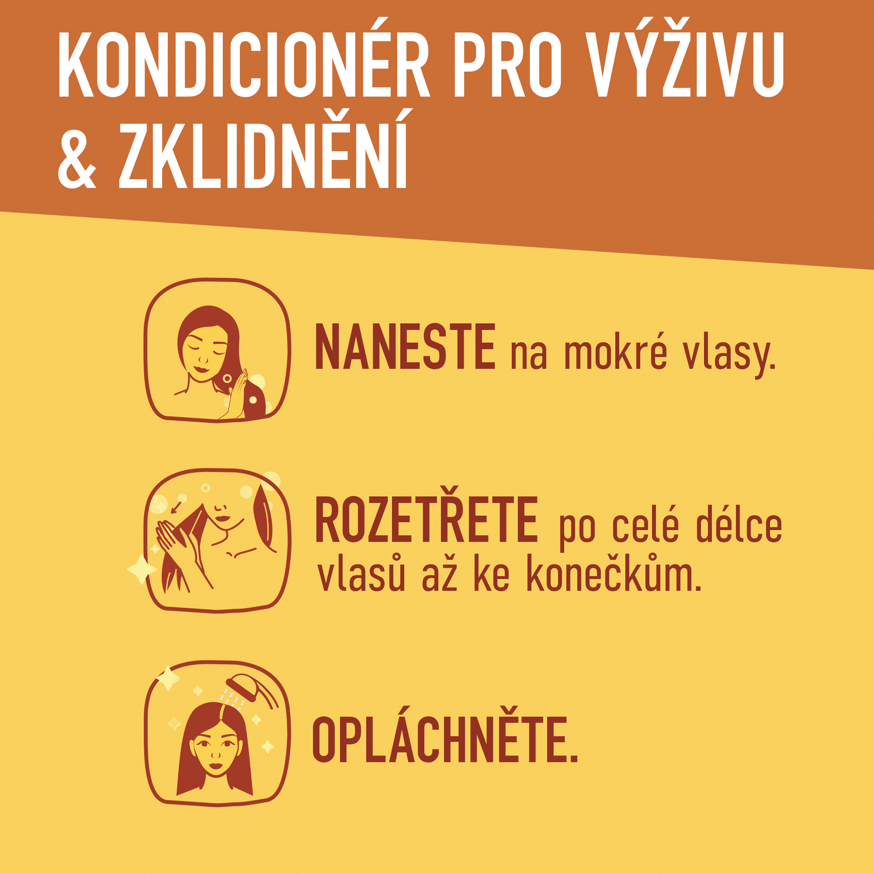 Aplikujte na mokré vlasy umyté šamponem Nature Box Nourish & Soothe Argan, nechte chvíli působit a opláchněte.