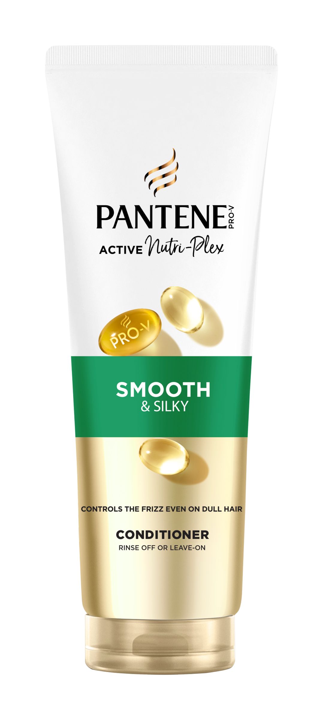 Objevte kondicionér Pantene Smooth & Sleek, tajemství hladkých a lesklých vlasů. Je obohacen naší Pro-V směsí, technologií ACTIVE NUTRI-PLEX a posilujícími lipidy. Tento kondicionér pro každodenní použití vyživuje vlasy a dodává jim živiny. Jeho složení bez minerálních olejů a barviv je určen pro péči o zplihlé, krepaté vlasy a je navržen tak, aby pomáhal chránit vlasové vazby. Testováno institutem Swiss Vitamin Institute. Dopřejte si dokonalý požitek z péče o vlasy s kondicionérem Pro-V Active Nutri-Plex Smooth & Sleek.