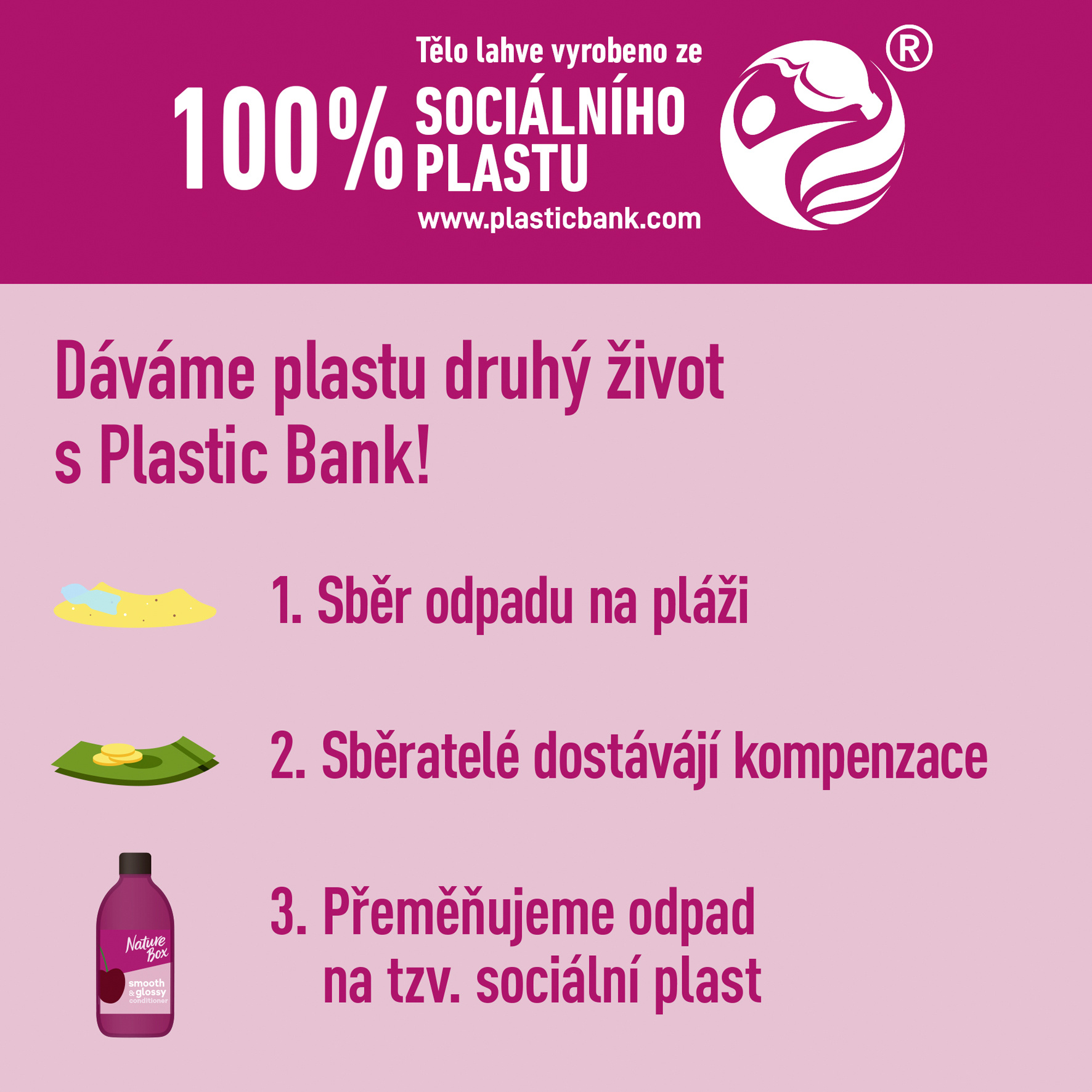 Nature Box balzám pro hladké vlasy se za studena lisovaným olejem z třešní. Certifikováno u Ecocert Greenlife jako Cosmos Natural podle Cosmos standardů. 98 % ingrediencí přírodního původu (vč. vody). Spolu s Plastic Bank bojujeme s plastovým odpadem z pláží i souše.