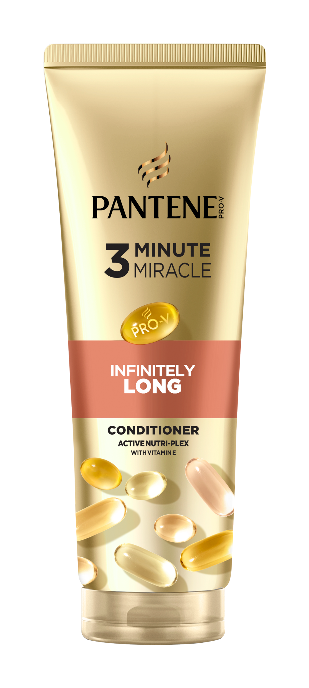 Objevte kondicionér Pantene Infinitely Long 3 Minute Miracle s recepturou Pro-V a technologií ACTIVE NUTRI-PLEX. Tato hloubková péče je speciálně vyvinuta tak, aby poskytovala intenzivní výživu a pomáhala obnovovat dlouhé vlasy se slabými konečky, a stala se tak nezbytnou součástí vašeho rituálu péče o vlasy. Naše jedinečná směs živin je obohacena o provitamin B5, vitamin E, posilující lipidy a ochranné antioxidanty, a představuje tak komplexní péči o zdraví vlasů. Náš hloubkový kondicionér, obohacený o látky chránící vazby, dokazuje naše odhodlání poskytovat vynikající řešení péče o vlasy. Je navržen tak, aby se okamžitě rozpustil ve vlasech a zajistil, že každý pramen bude nasycen potřebnými živinami, které napomáhají obnově** viditelného poškození již po jednom použití. Poznejte rozdíl již po prvním použití a uvidíte, jak se vaše vlasy promění a budou až o 100 % silnější* a viditelně zdravější. *Odolnost proti poškození způsobenému úpravou účesu ve srovnání se šamponem Aqualight/Volume/Clarify **Poškození povrchu vlasů