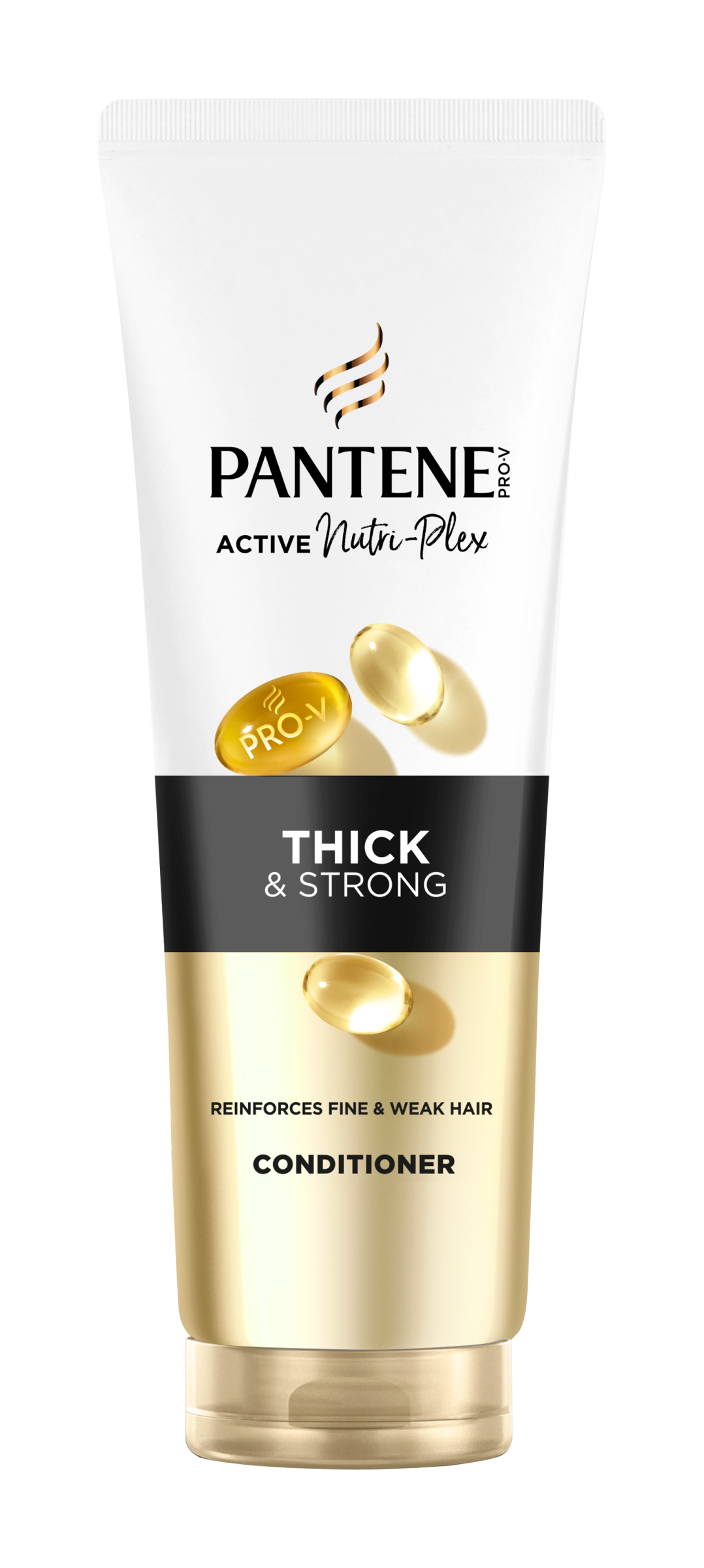 Objevte kondicionér Pantene Thick & Strong, svého nepostradatelného spojence při každodenní péči o vlasy. Tento kondicionér pro každodenní použití posiluje* vaše vlasy, aniž by je zatěžoval. Dodejte svým vlasům jedinečnou směs živin PRO-V, která je účinnou kombinací provitaminu B5, posilujících lipidů a ochranných antioxidantů. Naše pokročilé složení obohacené o 50 % více látek** chránících vazby a vylepšené technologií ACTIVE NUTRI-PLEX pomáhá posilovat jemné vlasy od kořínků až ke konečkům a dodává jim zdravý lesklý vzhled a hebkost. Testováno institutem Swiss Vitamin Institute. Zažijte dokonalý požitek z péče o vlasy s kondicionérem Pro-V Active Nutri-Plex Thick & Strong a dopřejte svým vlasům péči, která je bez námahy zanechá lesklé a hladké. *Odolnost proti poškození způsobenému úpravou účesu **ve srovnání s předchozím složením