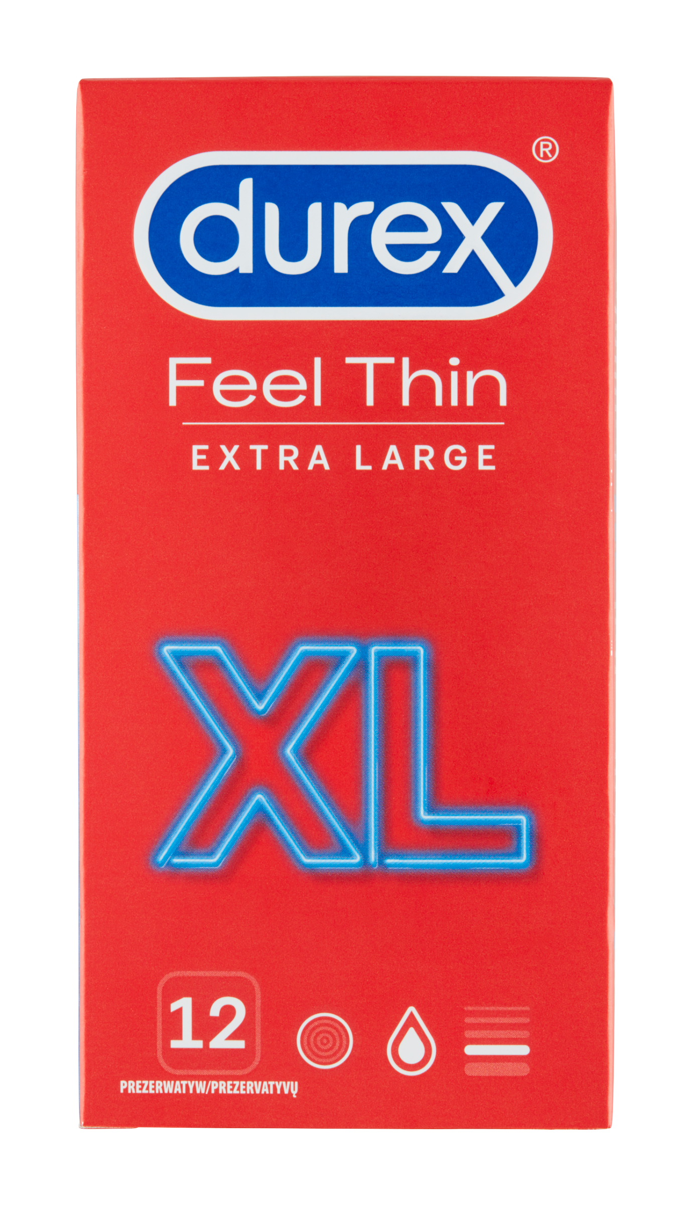 Kondomy Durex Feel Thin XL pohodlně padnou mužům, kteří hledají větší rozměry, než nabízí náš standardní Feel Thin kondom. Najděte kondom, který vám nejlépe padne Každý z nás je jiný, proto výběr správného tvaru a velikosti vždy zajistí lepší ochranu i pohodlí. Hladké kondomy, tvar easy-on pro snadnější nasazení zakončený rezervoárem