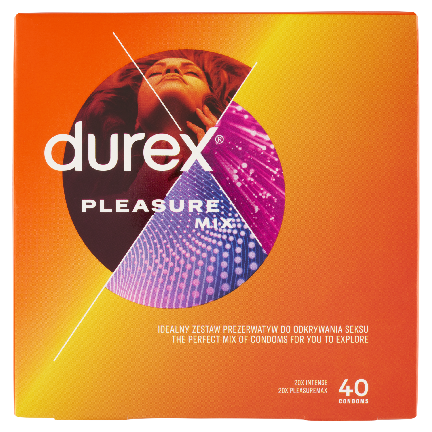 Někdy je zábavné objevit něco nového. Durex Pleasure Mix je sada vybraných kondomů pro skvělou zábavu. Balení obsahuje 20 ks kondomů Intense a 20 ks kondomů Pleasuremax. Použijte kondom, o kterém víte, že je bezpečně nasazený s ohledem na velikost, která vám nejlépe padne. Vroubkované kondomy se stimulujícími výstupky, tvar Easy-on pro snadnější nasazení zakončený rezervoárem. Kondomy z přírodního kaučukového latexu.