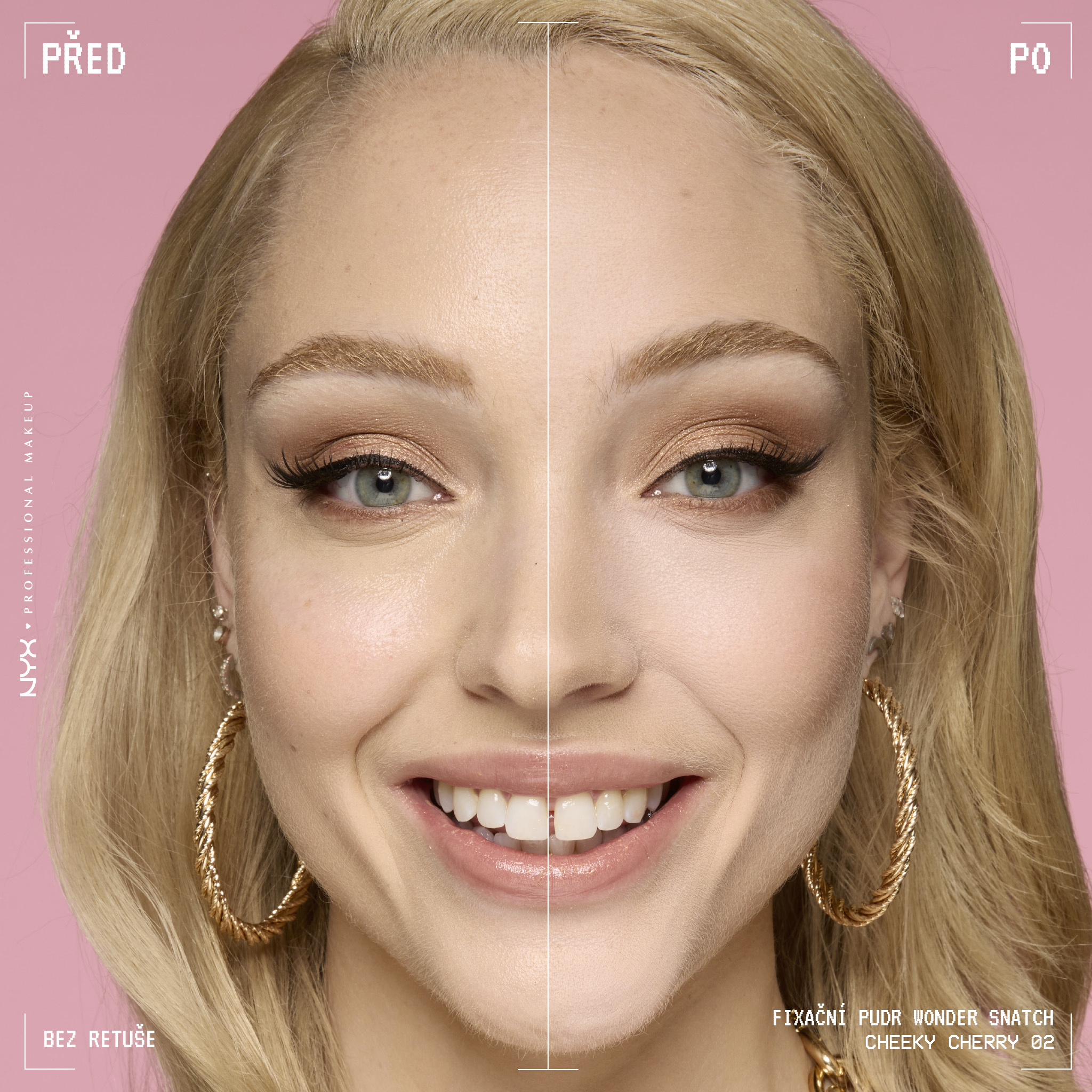 K zafixování základu nanes tenkou vrstvu pudru pod oči, na T-zónu, bradu. Pod lícní kosti ve větším množství nanes v případě, že chceš vykonturovat obličej. Přebytečný pudr po několika okamžicích štětcem setři.