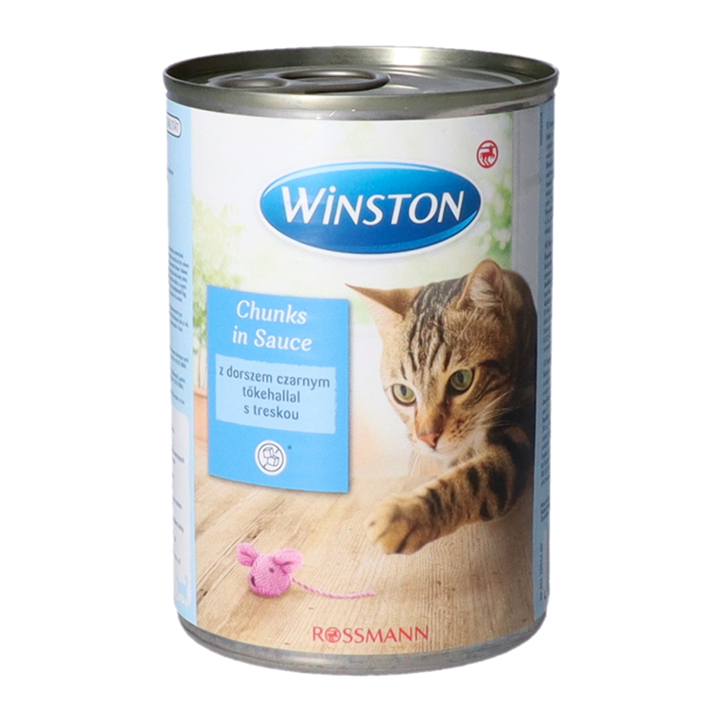 Maso a výrobky živočišného původu, obiloviny, ryby a vedlejší výrobky z ryb (4 % treska) minerální látky, vedlejší výrobky rostlinného původu (jablečný extrakt).