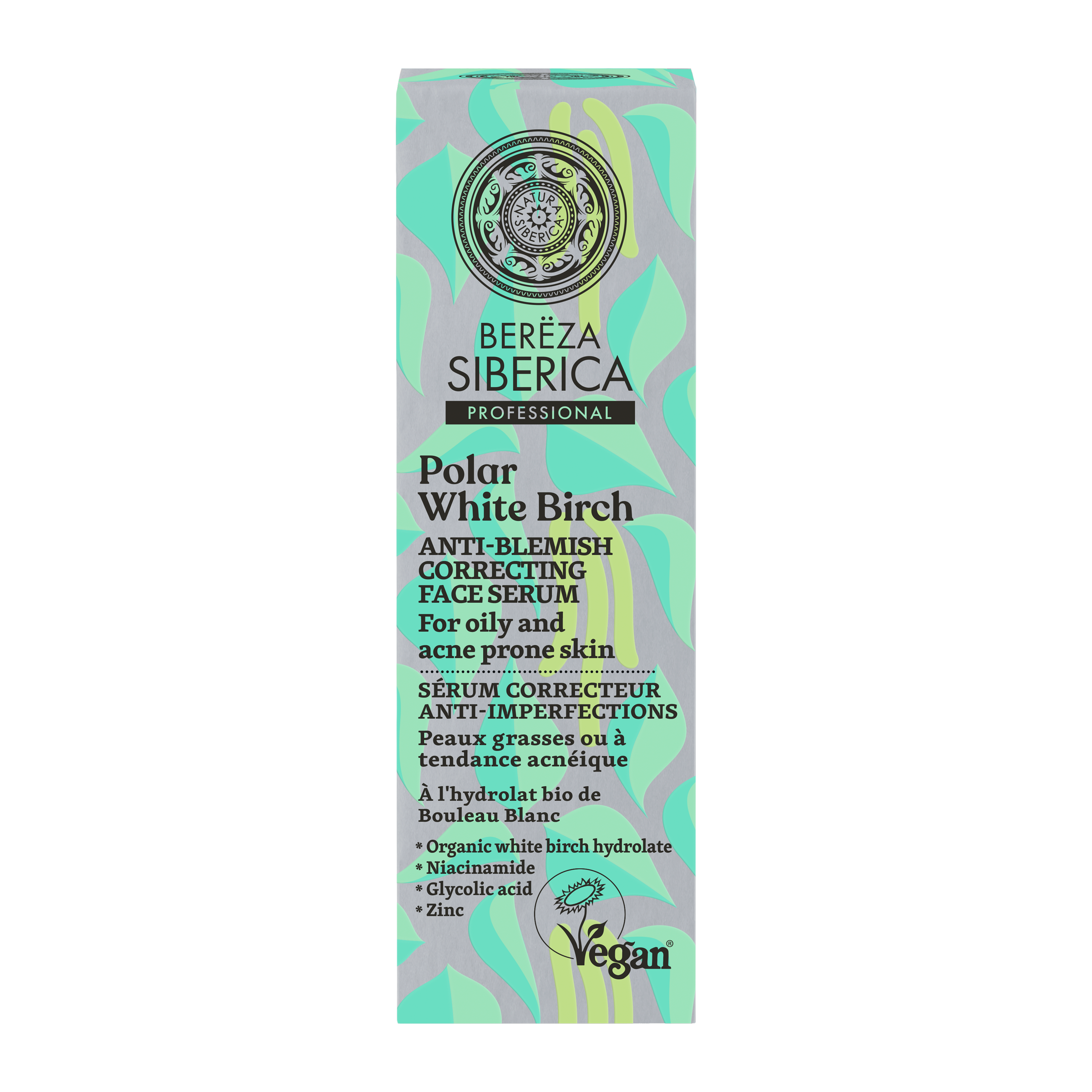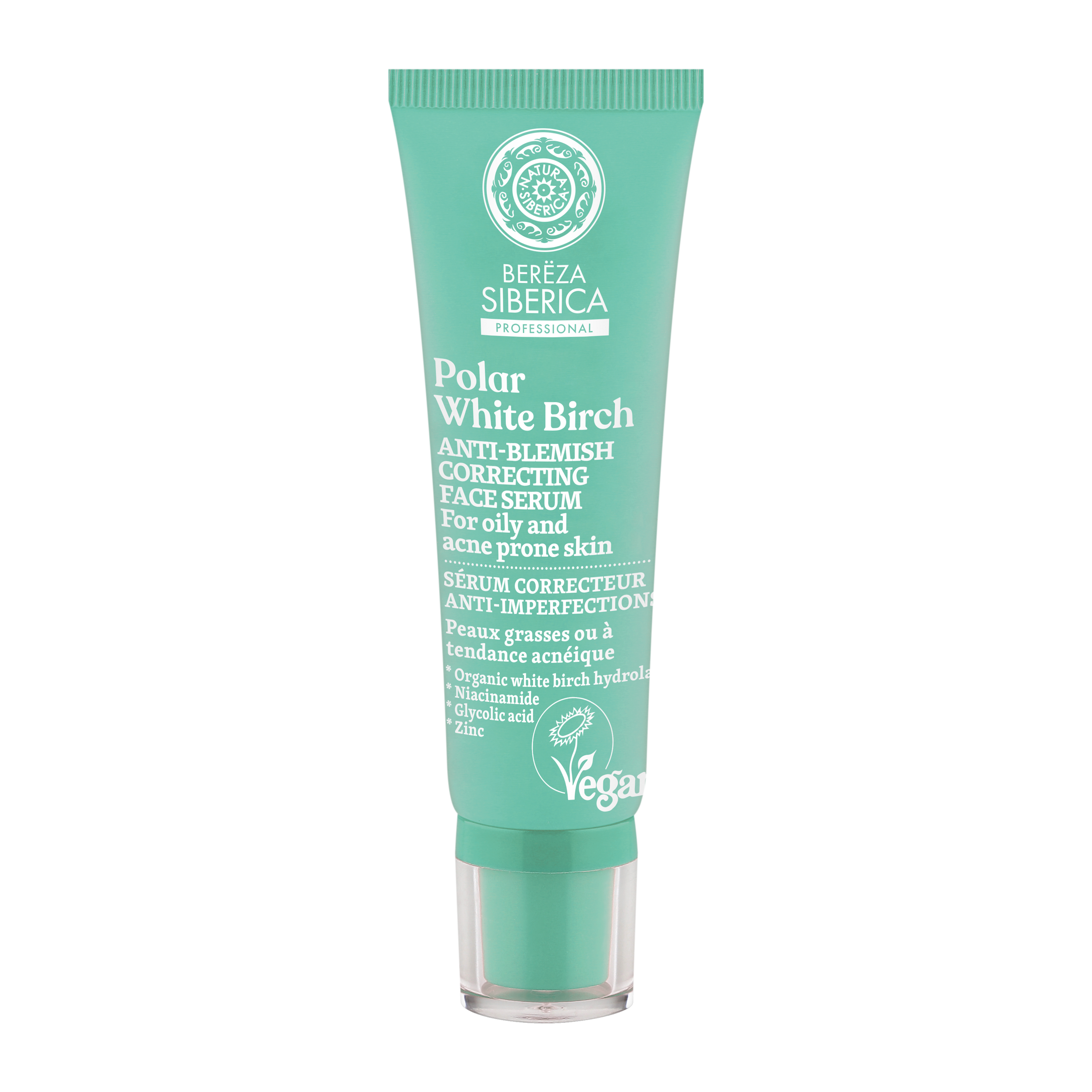 Po použití tohoto korekčního séra proti nedokonalostem zažijete dramatickou změnu. Bojuje proti nedokonalostem pokožky, předchází akné a černým tečkám, zklidňuje pokožku a minimalizuje rozšířené póry. Bílá polární bříza (Berёza) – je vysoce bohatá na betulin a obsahuje velké množství vitamínů B2 a B5, které pokožku dokonale zklidňují a zlepšují pleť. Niacinamid posiluje bariéru pokožky proti ztrátě hydratace a reguluje její rovnováhu. Kyselina glykolová dokonale rozjasňuje, tonizuje a vyhlazuje texturu pokožky. Zinek snižuje výskyt akné a vyrážek.