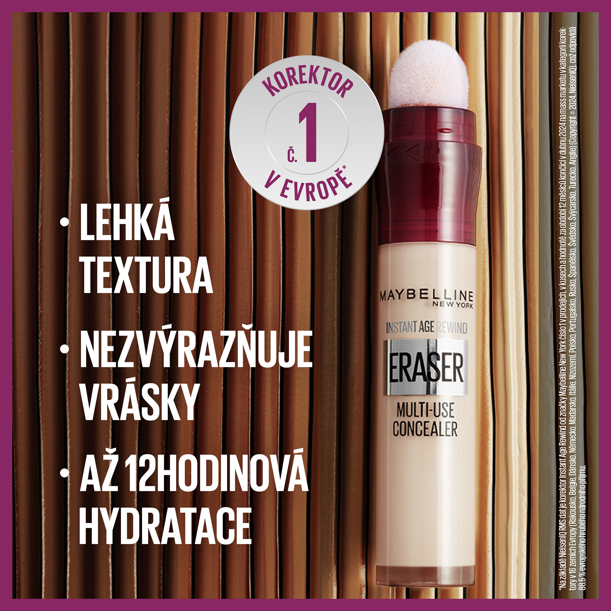 Instant Eraser je tekutý korektor se speciálním aplikátorem, který vymaže kruhy pod očima, zakryje nedokonalosti nebo pomůže dotvarovat obličej. Speciální aplikátor zaručí snadnou a čistou aplikaci a lehká textura nezvýrazňuje vrásky a na pleti působí přirozeně. Navíc ho klidně můžeš použít na celý obličej jako make-up. Zakryj kruhy a rozzař si okolí očí s Instant Eraser korektorem od Maybelline!