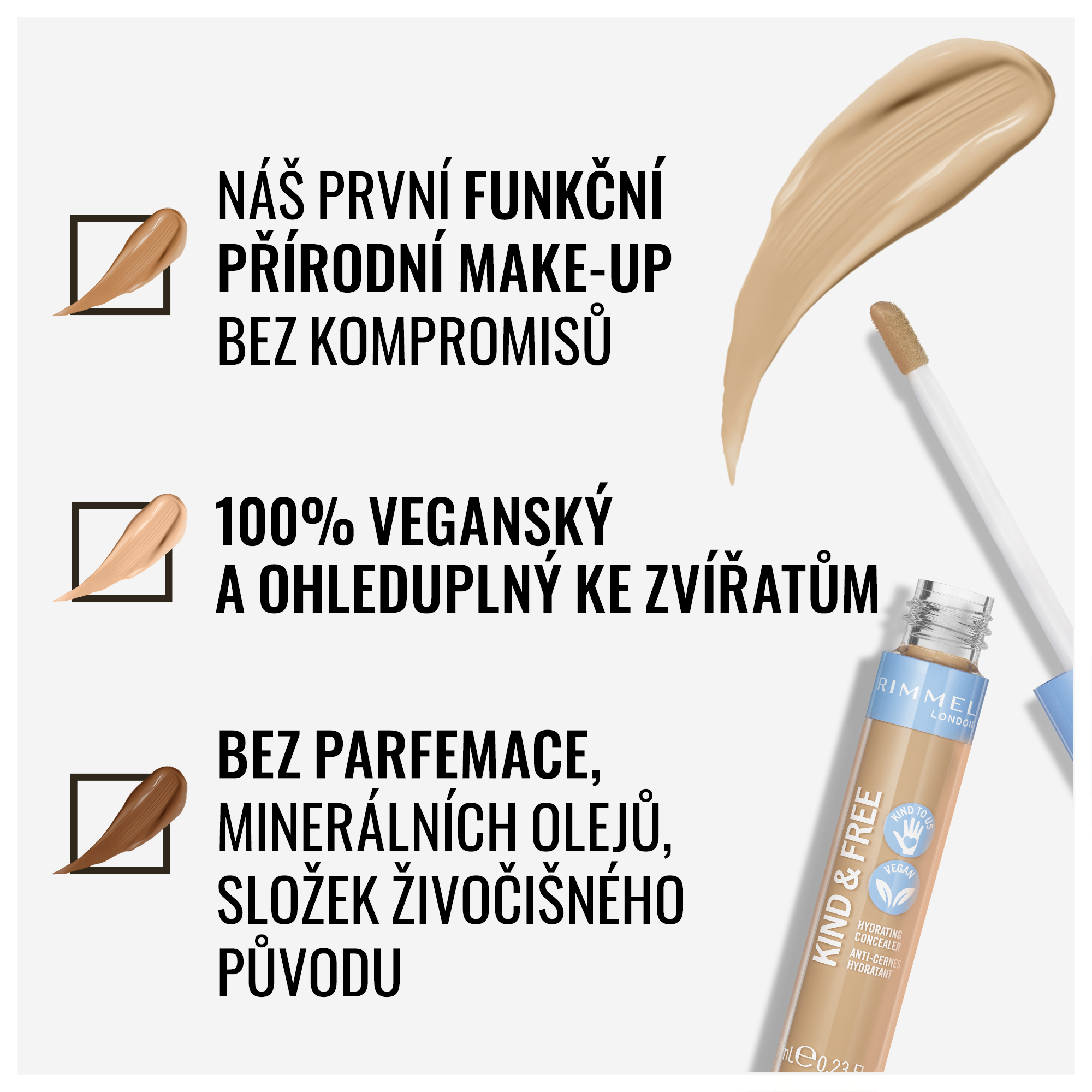 Rimmel London představuje svůj úplně první veganský korektor bez kompromisů. Složení je bez minerálních olejů a jakýchkoliv složek živočišného původu. Má střední krytí s možností vrstvení. Zakrývá nedokonalosti a tmavé kruhy pod očima. Obal je vyroben z recyklovaných materiálů.