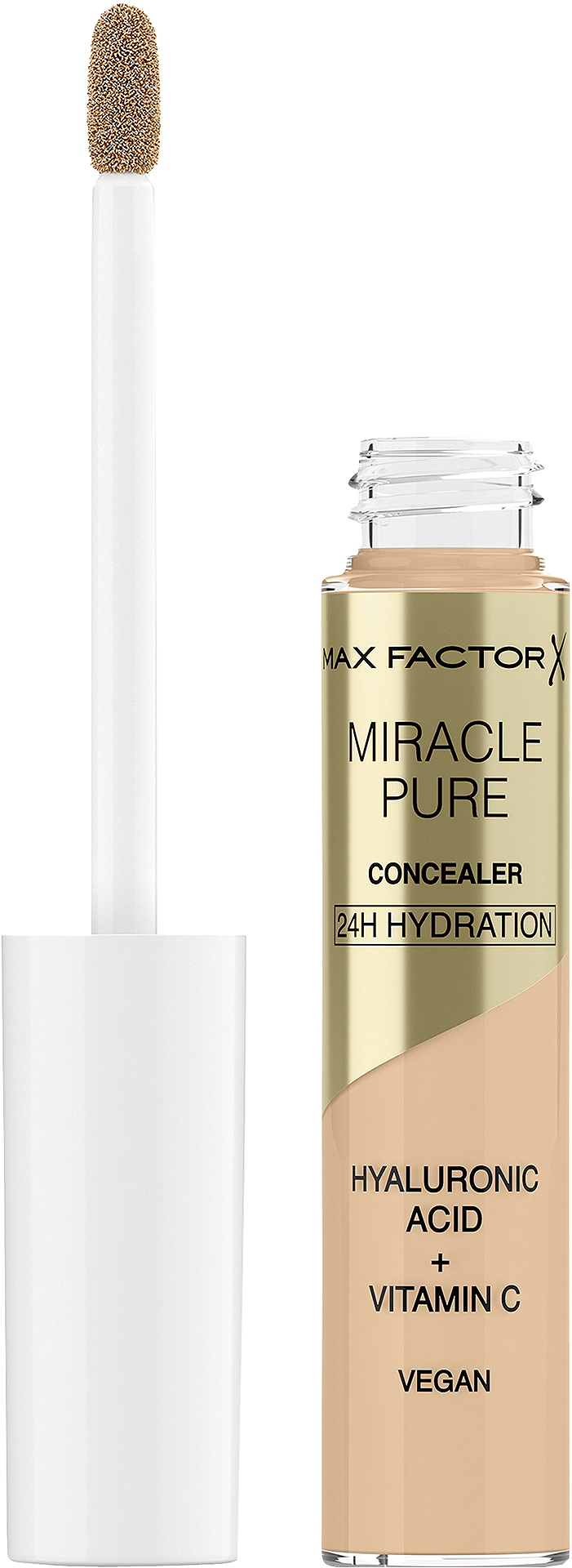 Víceúčelový korektor Miracle Pure kryje nedostatky a zároveň pečuje o pleť během nošení, navíc díky svému inovativnímu a lehkému složení nabízí až 24 hodinovou hydrataci. Složení je obohaceno o pečující ingredience, jako je kyselina hyaluronová, vitamín C a peptidy. Korektor byl navržen tak, aby dokonale splynul s pletí celého obličeje, nezanášel jemné linie a vytvářel bezchybný finiš, který vydrží po celý den. Pomůže pleť rozzářit a rozjasnit a navíc redukovat viditelnost nežádoucích textur a vrásek. Korektor Miracle Pure od Max Factor byl vyroben z recyklovaných materiálů a je vhodný i pro citlivou pokožku díky svému flexibilnímu aplikátoru, který je jemný, ale precizní. Klinicky a dermatologicky testováno.