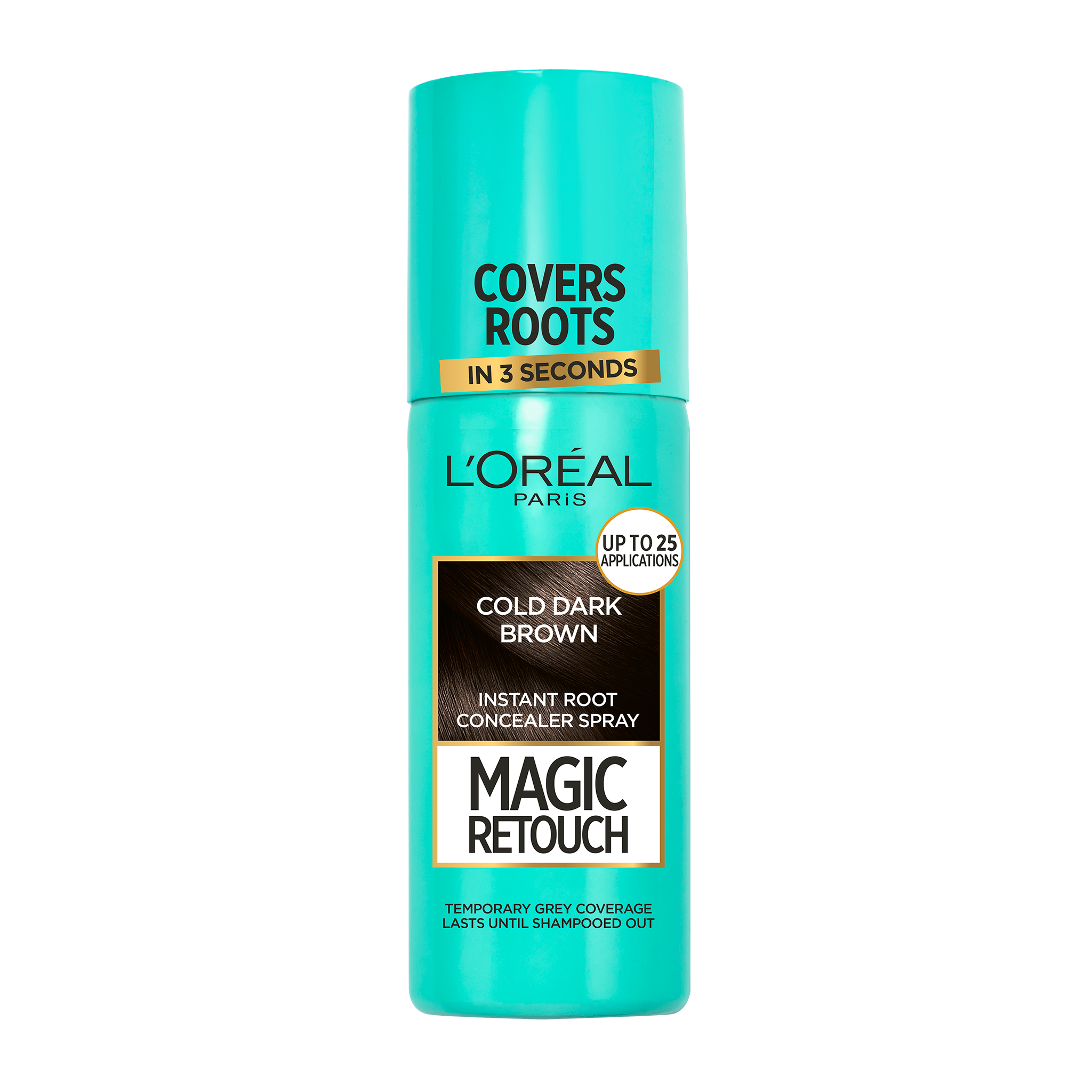 Sprej na vlasy pro okamžité zakrytí odrostů a šedin L’Oréal Paris Magic Retouch je dočasný barevný sprej v několika přírodních odstínech, který v jediném kroku překryje šedivé či barevné odrosty. Tajemstvím spreje je barevný pigment, který dokonale přilne k vlasu a bezpečně vydrží až do dalšího umytí vlasů šamponem. Díky spreji L’Oréal Paris Magic Retouch dosáhnete okamžitého překrytí šedin za několik málo vteřin. Po aplikaci zjemňuje Magic Retouch barevný přechod vlasů a k vlasu dokonale přilne. Zároveň rychle zasychá a dodává vlasům jemnou texturu.