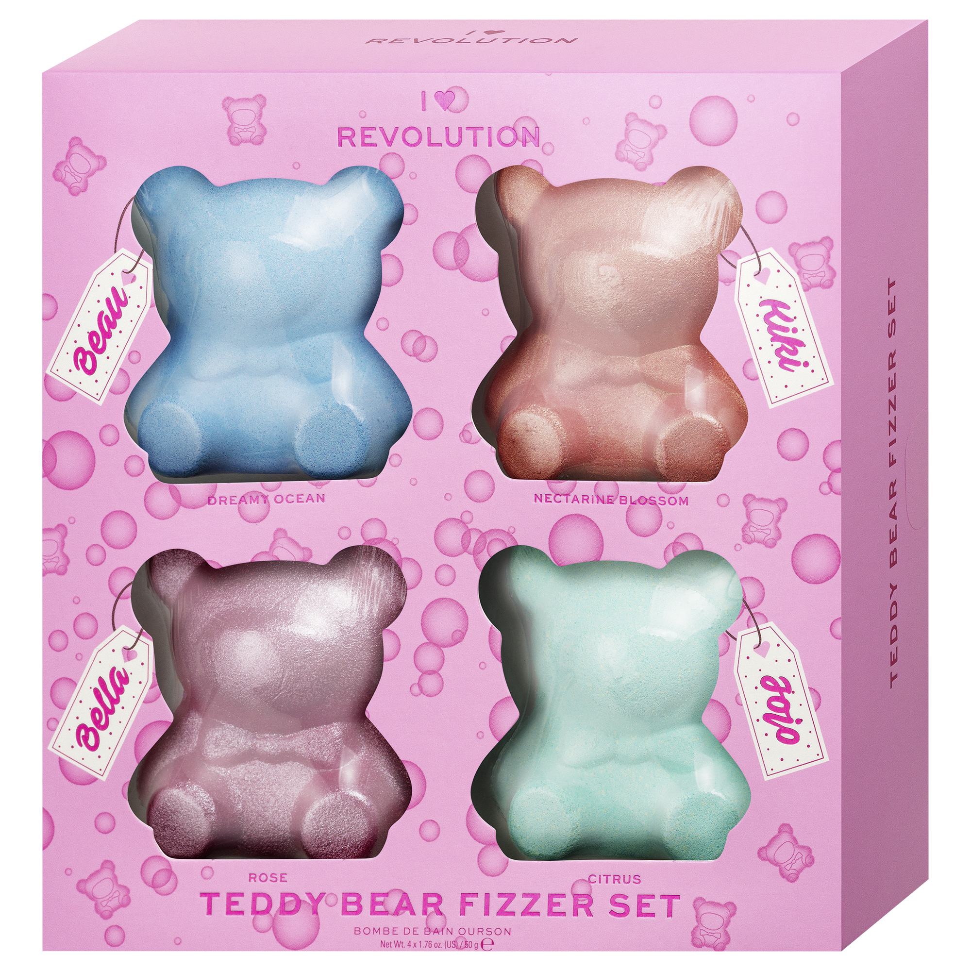 Chceš koupel plnou šumivé zábavy? Potom potřebuješ naši novou kolekci šumivek do koupele Teddy Bear Fizzers od I Heart Revolution. Přidej do své koupele vřelá medvědí objetí se čtyřmi novými medvědími kamarády, ze kterých si v tomto exkluzivním setu můžeš vybrat. Přidej vybraného šumivého medvídka do tekoucí nebo teplé vody a sleduj, jak se rozpouští a uvolňují se z něj barevné bublinky. Jsi připravena povznést svoji koupel o stupeň výš s naší kolekcí parfémovaných šumivek?