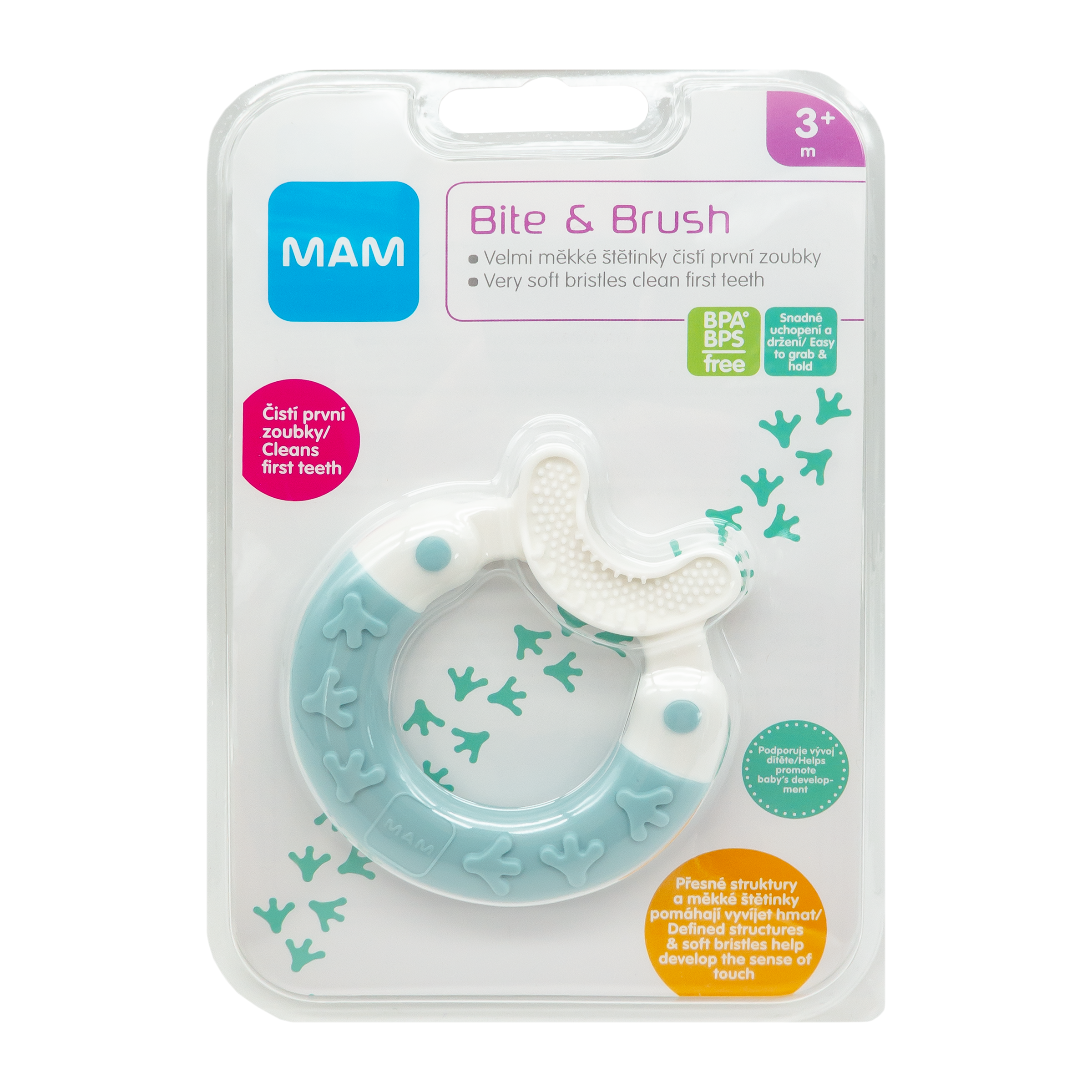 První zoubky dítěte nový zážitek. Kousátko Bite & Brush nejenom masíruje a zklidňuje dásně dítěte, velmi měkké štětinky také čistí první zoubky. Podporuje zdravý vývoj čelisti a podněcuje aktivní učení. Poskytuje pocit pohodlí a úlevy od prořezávání zoubků. Kousátko lze snadno uchopit a držet díky speciálnímu kruhovému tvaru. Kousátko je extra lehké ideální pro malá miminka.