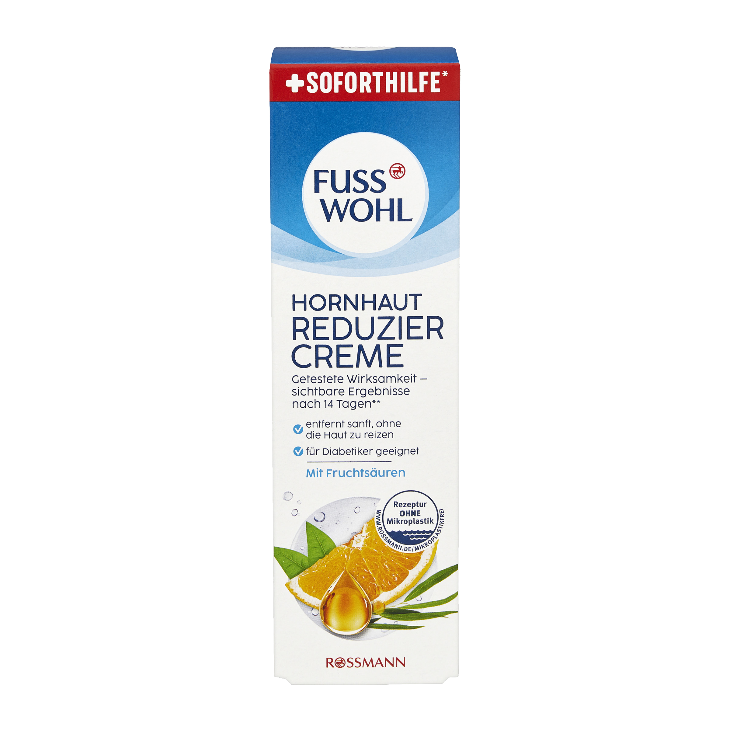 Redukční krém Fusswohl poskytuje intenzivní péči a redukci ztvrdlé či popraskané kůže. Hydratační glycerin a jojobový olej posilují přirozenou ochrannou funkci pokožky, změkčují ji a udržují pružnou. Krém se absorbuje rychle a nezanechává mastný film. Při pravidelném používání se snižuje výskyt ztvrdlé pokožky. Za pouhé 4 dny se pokožka stává znatelně měkčí a hladší.
