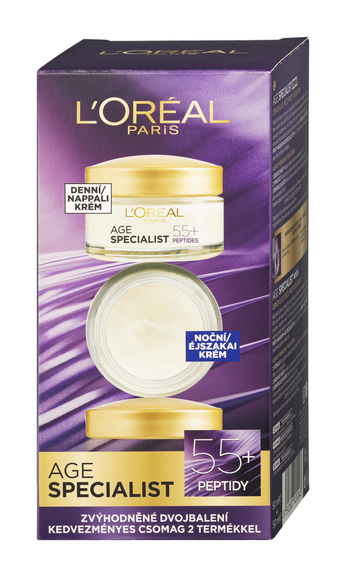 L’Oréal Paris Age Specialist 55+ denní krém ve výhodném dvojbalení dají vaší pleti přesně to, co si zaslouží. Pomáhají redukovat vrásky, zlepšit elasticitu pleti a remodelovat kontury obličeje.