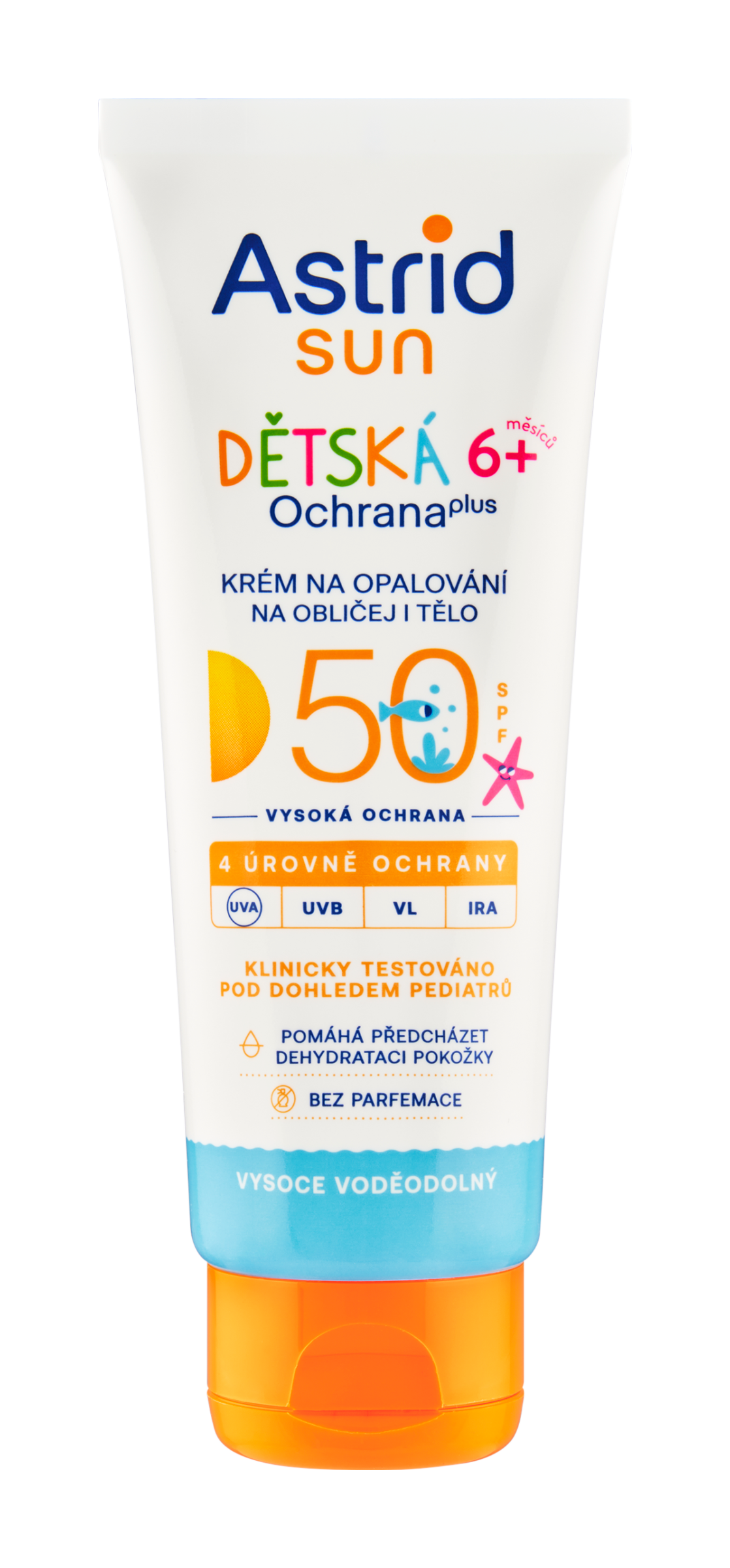 Astrid Sun Dětský krém na opalování OF 50 s inovativní sluneční technologií (UVA/UVB/IR*/VL*) poskytuje pokožce širokospektrální fotostabilní ochranu před škodlivými vlivy UV a infračerveného záření a viditelného světla. Složení bylo vyvinuto tak, aby se minimalizovalo riziko alergických reakcí.