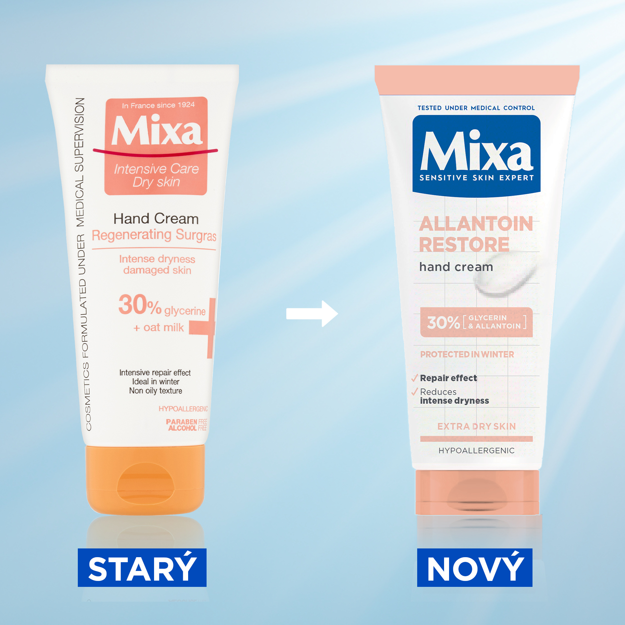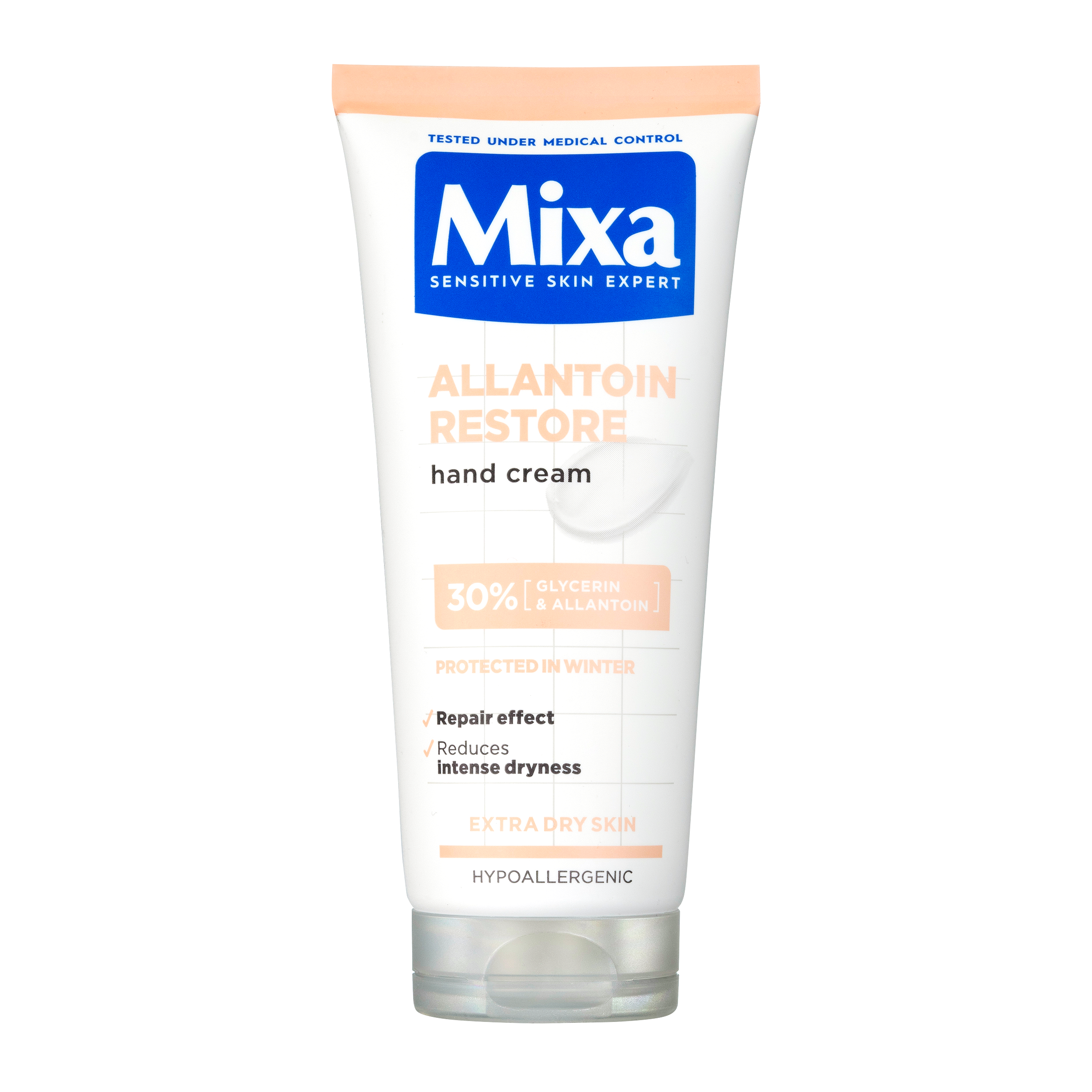 Mixa Allantoin Restore obnovující krém na ruce obsahuje účinné složky pro obnovu a hydrataci velmi suché a poškozené pokožky rukou. Allantoin je známý pro své obnovující a zklidňující vlastnosti. Glycerin je známý pro své intenzivně hydratační a ochranné vlastnosti. Krém je ideální pro velmi vysušené ruce a pro použití v zimním období.